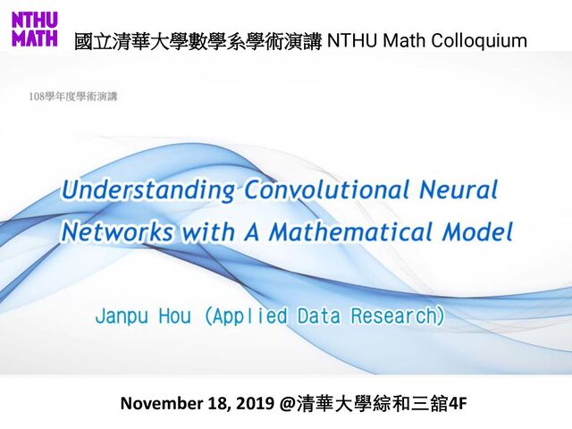 國立清華大學數學系學術演講 NTHU Math Colloquium November 18, 2019 @清華大學綜和三舘4F