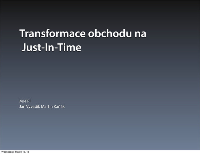 Transformace obchodu na Just-In-Time MI-FRI Jan Vyvadil, Martin Kaňák Wednesday,