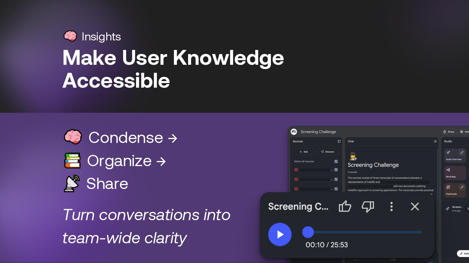 → Organize → Share Turn conversations into team-wide clarity Insights