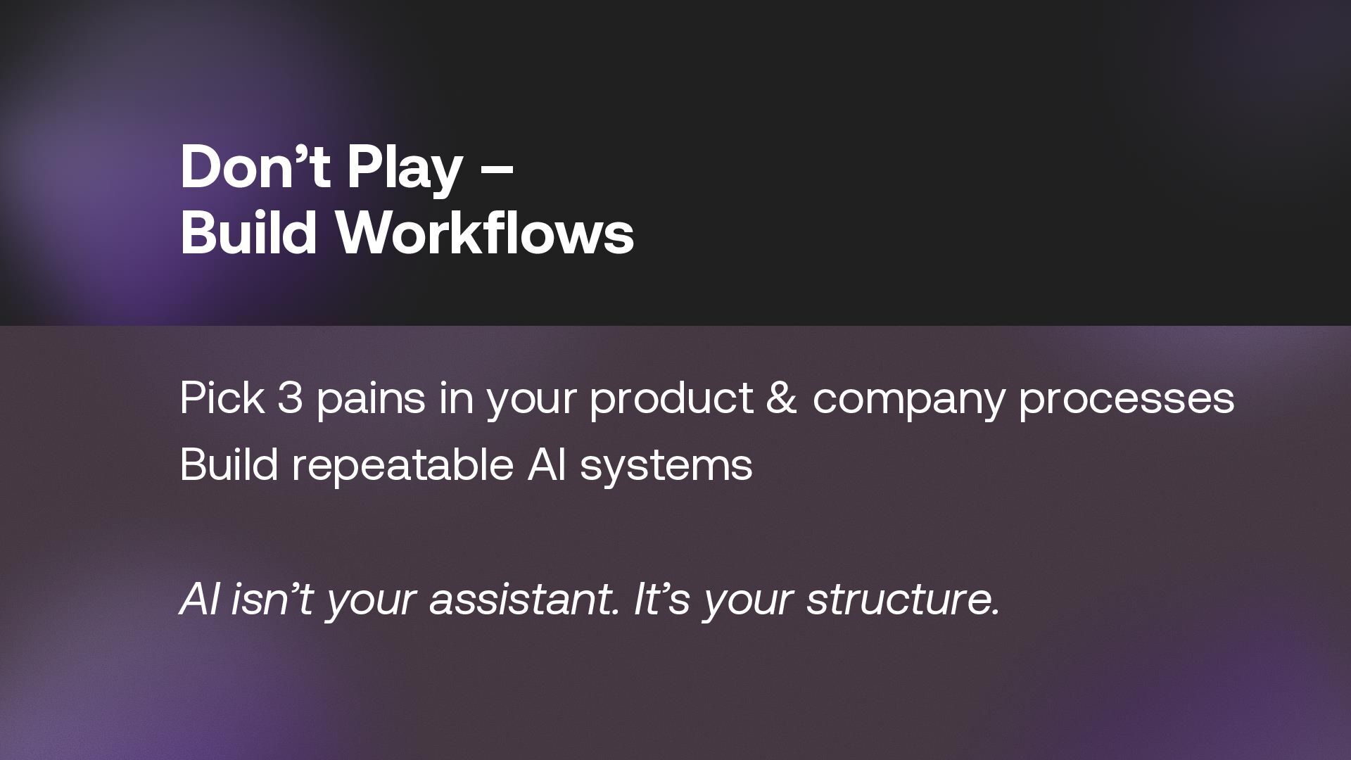 Pick 3 pains in your product & company processes Build repeatable AI systems AI isn’t your assistant. It’s your structure.