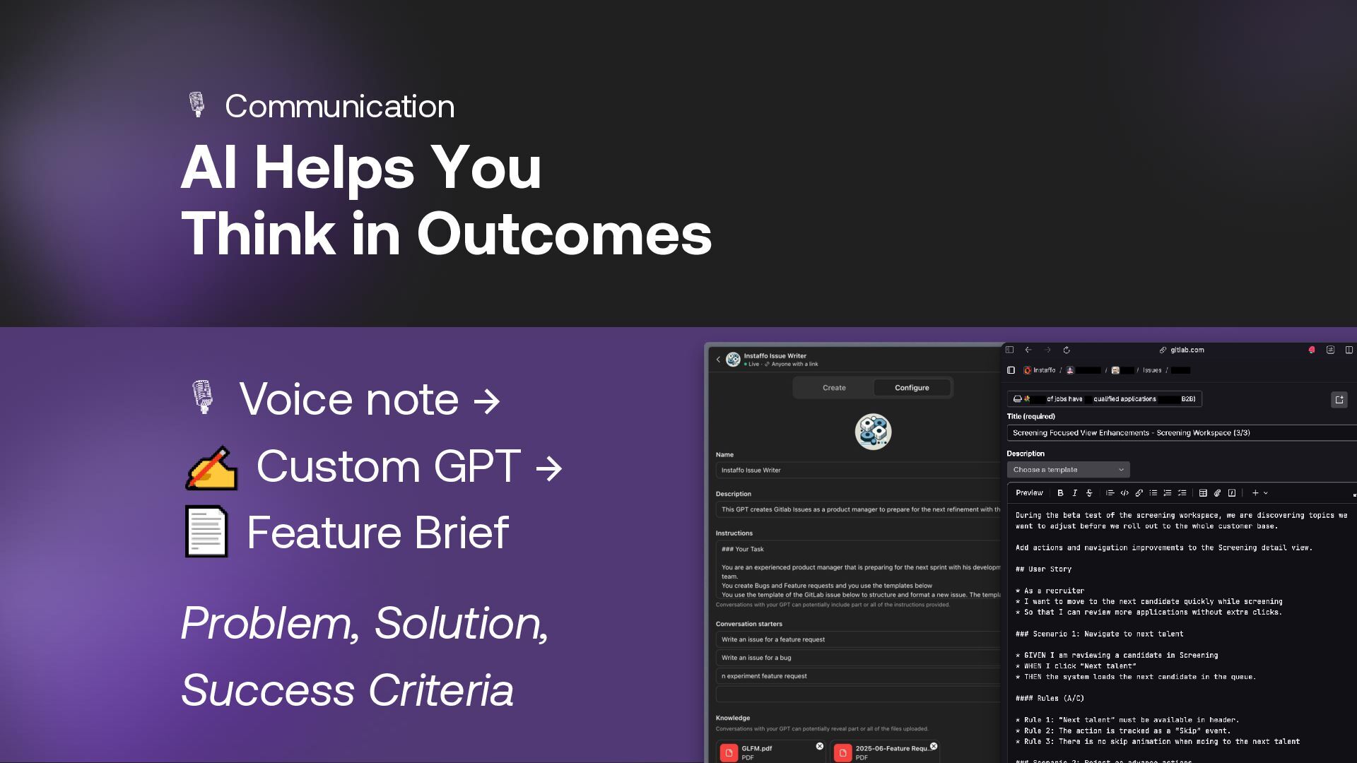 Instaffo Voice note → Custom GPT → Feature Brief Problem, Solution, Success Criteria Communication
