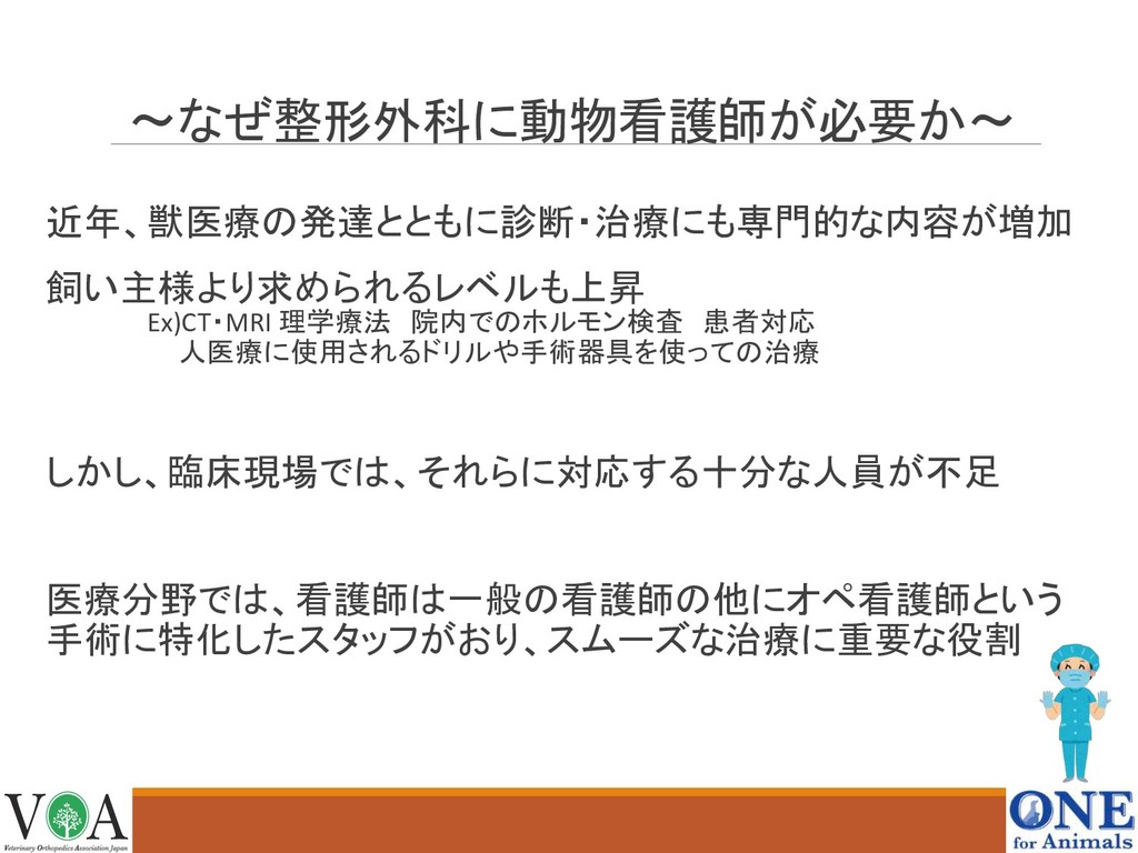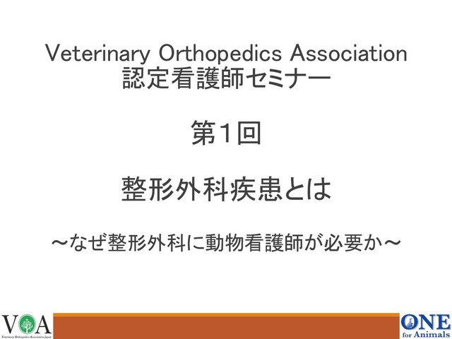Veterinary Orthopedics Association 認定看護師セミナー 第1回 整形外科疾患とは 〜なぜ整形外科に動物看護師が必要か〜