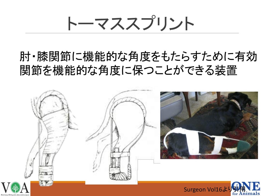 トーマススプリント 肘・膝関節に機能的な角度をもたらすために有効 関節を機能的な角度に保つことができる装置 Surgeon Vol16より引用