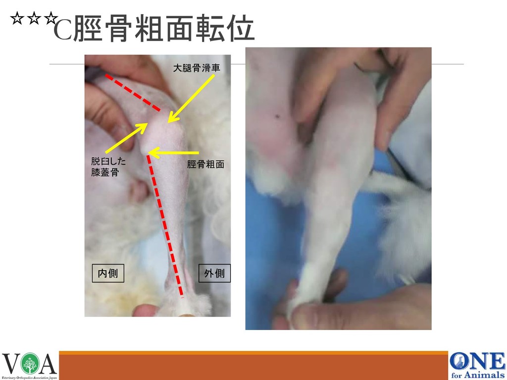 脛骨粗面 大腿骨滑車 脱臼した 膝蓋骨 内側 外側 C脛骨粗面転位 ☆☆☆
