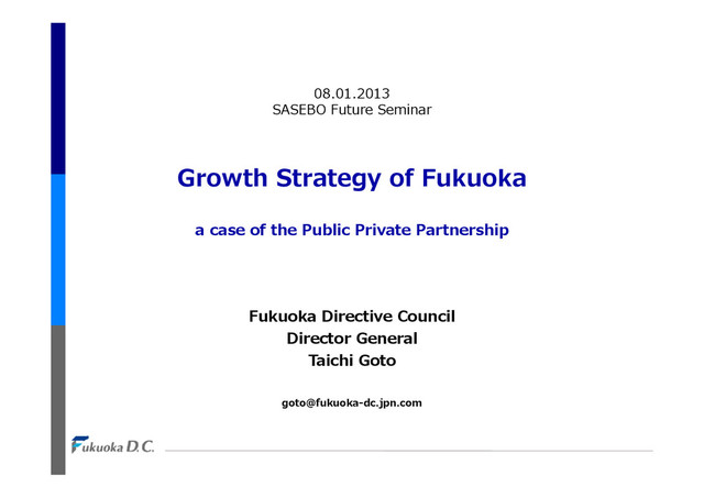 Shanghai, Mumbai, Beijing, Delhi, Canton, Rio de Janeiro, Istanbul, Cairo, Metro Manila, Calcutta, Tehran, Bangkok, Jakarta, Tianjin, Dhaka, Riyadh, Lima, Bangalore, Karachi, Chennai, Ho Chi Minh, Hyderabad, Chongqing, Ahmadabad, Jeddah, Pune, Hanoi, Shenyang, Alexandria, Surat, Lahore, Wuhan, Lagos, Chengdu 3%〜:Mexico City, Buenos Aires, Moscow, Brasilia, Santiago, Johannesburg, Bogota, Monterrey, Cape Town, Guadalajara, Saint Petersburg, Porto Alegre, Belo Horizonte, Ankara, Dublin City 2008(real) 2015(estimate) 2008-2015 rank real GRP rank real GRP GRP increment GRP growth rate Tokyo 1 1,479 1 1,608 189 1.7% New York 2 1,406 2 1,597 151 1.8% Los Angeles 3 792 3 885 93 1.6% Osaka/Kobe 7 417 10 449 32 1.1% Shanghai 25 233 17 355 132 6.6% Seoul 21 291 19 342 51 2.3% Vancouver 68 95 73 109 14 2.0% Fukuoka 73 88 79 99 11 1.7% International benchmark(Growth estimate) Fukuoka Cityʼs estimated annual GRP growth rate is 1.7%. The real GRP of 2015 ranks 79th within the worldʼs major cities. Annual growth rates of more than 3% are marked mainly by cities of emerging countries. Real GRP of the worldʼs main cities (*)Growth rate is the annual rate, GRPʼs unit is 1 billion dollars