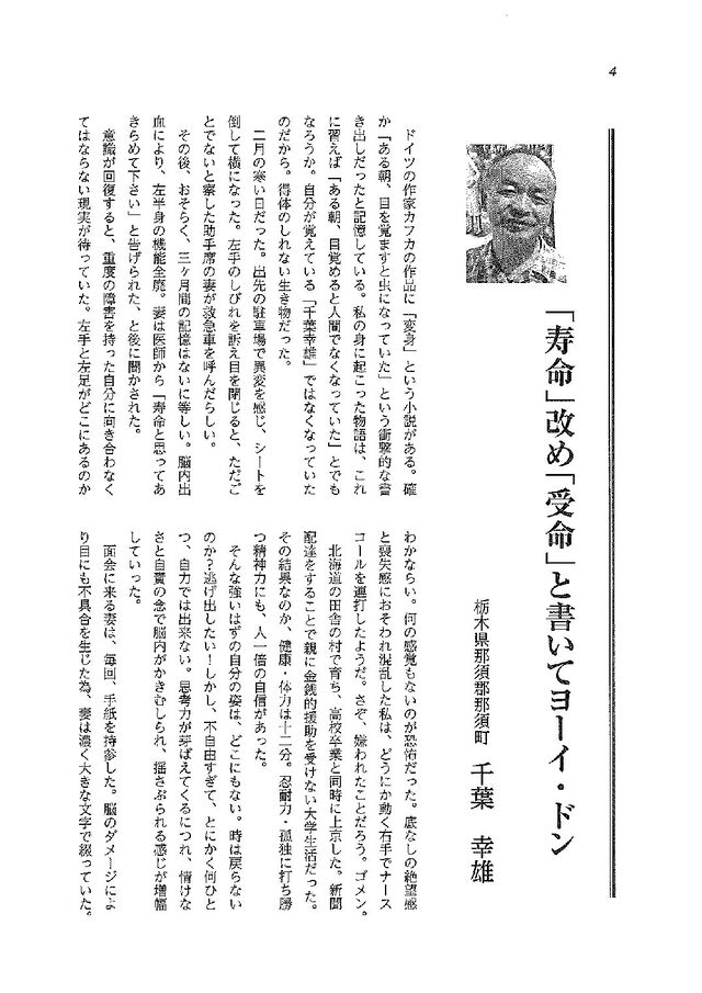 「寿命」改め「受命」と書いてヨーイ・ドン 千葉幸雄さん作