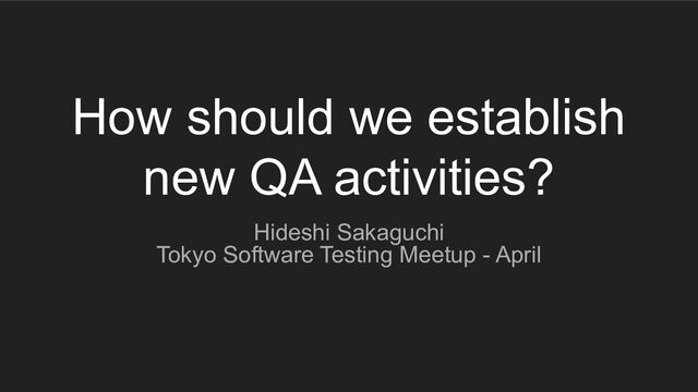 On regular meeting, present what the new QA activity is and how it works • Case Study: E2E Auto-test script exists, but its maintenance cost is too high ◦ Measure how much of time spent to maintain the script becomes reduced ◦ Have an enquete about how the members feel that the script became easy to maintain