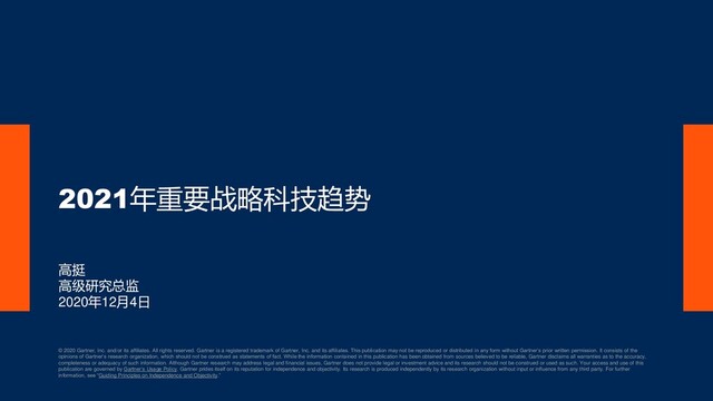 reserved. Gartner is a registered trademark of Gartner, Inc. and its affiliates. 来源:Success in the Digital Experience Economy Requires Connecting MX, UX, CX and EX, G00720630 全面体验 到2024年,提供全面体验的企业机构将拥有 比竞争对手高25%的客户和员工体验满意度。 以人为本 Gartner战略规划假设 分析师:Jason Wong, Michael Chiu, Michelle Duerst, Brent Stewart, Don Scheibenreif 10 © 2020 Gartner公司及/或其关联公司版权所有。Gartner是Gartner公司或其关联公司的注册商标。 用户 体验 员工 体验 客户 体验 多重 体验 全面 体验