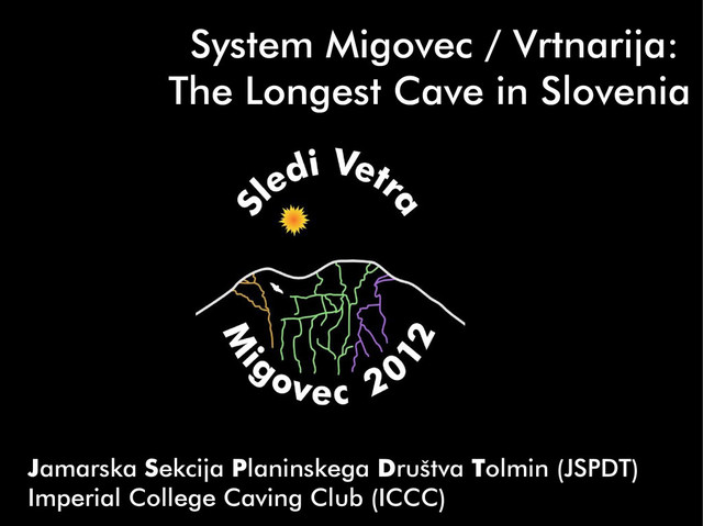 The Imperial cavers have organised joint expeditions with the local Slovene club (JSPDT) to the mountain of Tolminski Migovec since 1994, with more than 80 Imperial students having contributed to the discovery. Every year they explored deeper and further into the mountain, the main discoveries being two large and deep cave systems (System Migovec and System Vrtnarija), both notable caves in their own right. A further 2000 m of cave passage was discovered this summer, leading to the connection of these two cave systems at a depth of 650 m.