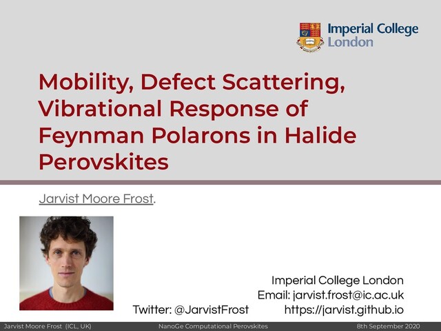 We discuss our work in: extending the Feynman theory to explicitly treat the multiple phonon branches; extending our codes to simulate the frequency dependent mobility; predicting the effect of polaron renormalisation on vibrational frequency and spectra; predicting Urbach tails from the instantaneous electric fields in a polar material; and explain slow non-radiative recombination as being due to a reduction in defect scattering cross-section of the Gaussian localised polaron state.