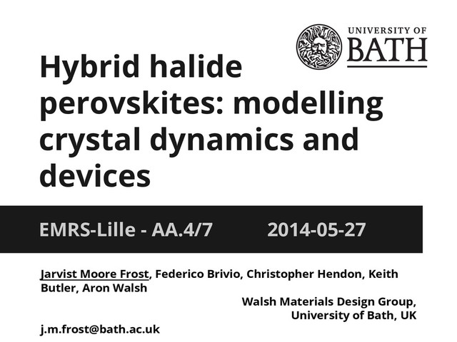 Slide deck presented at EMRS 2014 on the subject of modelling the molecular ferroelectric response of hybrid halide perovskites (as used recently to great effect in solar cells).