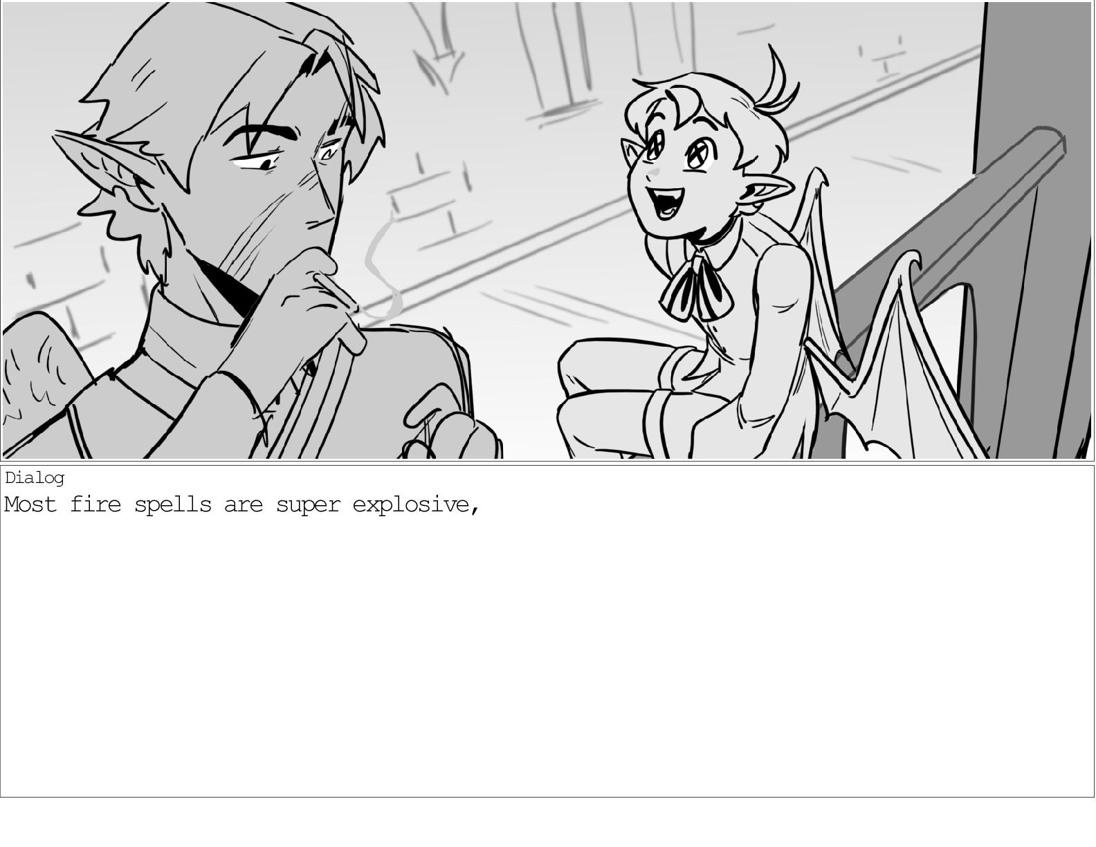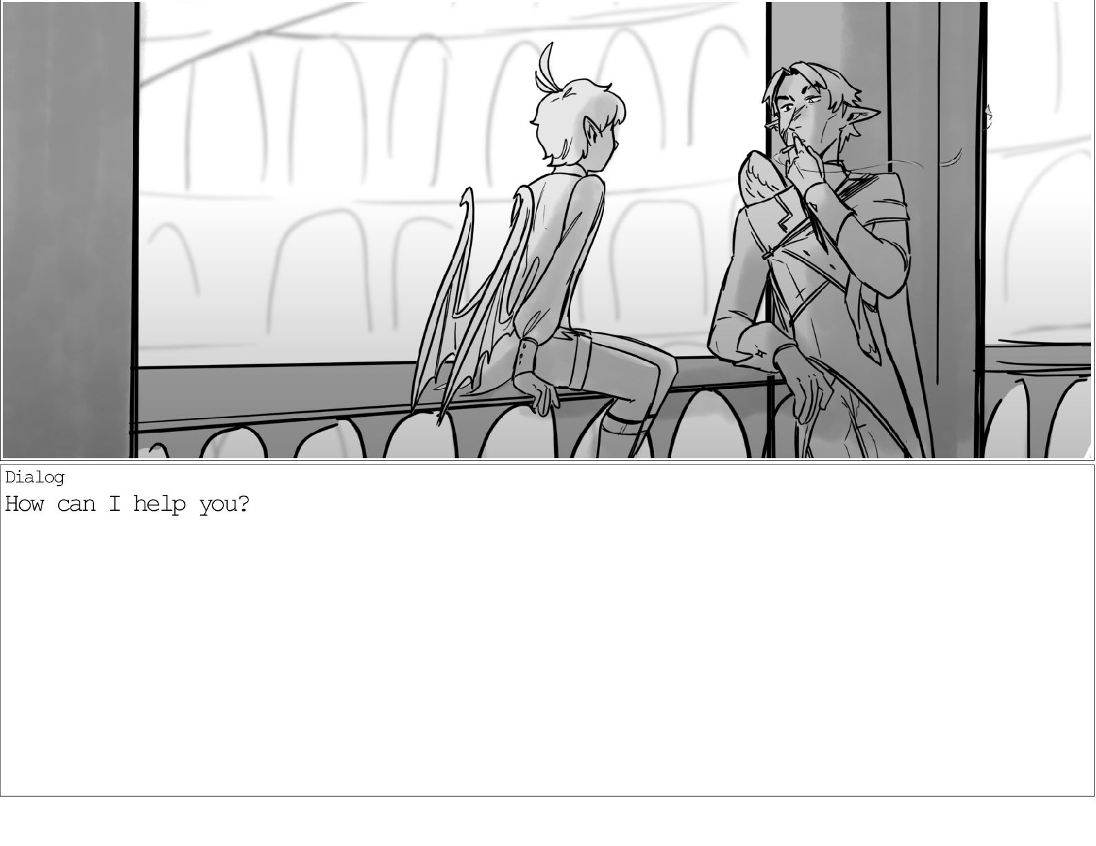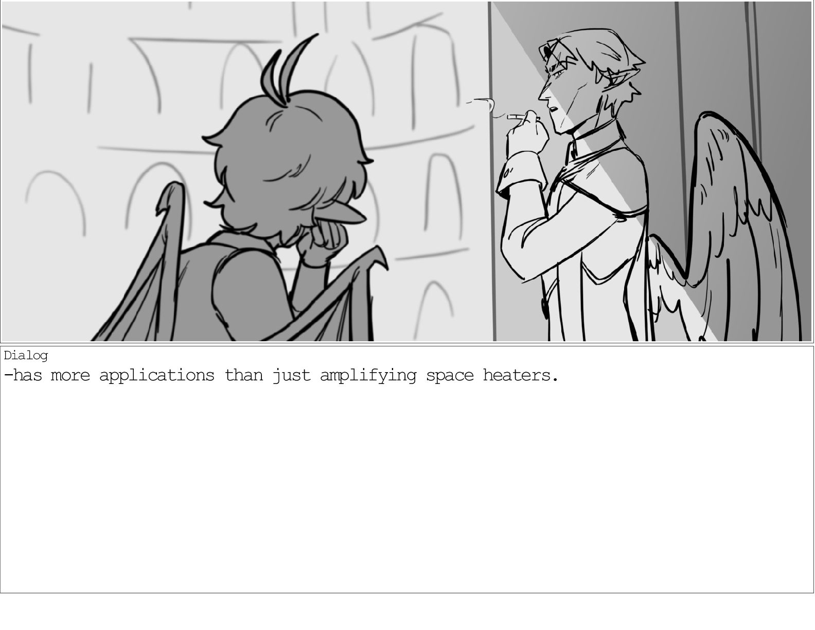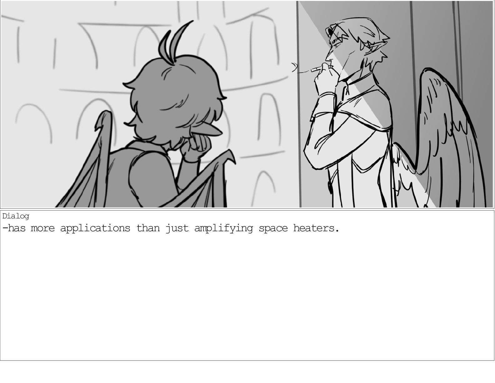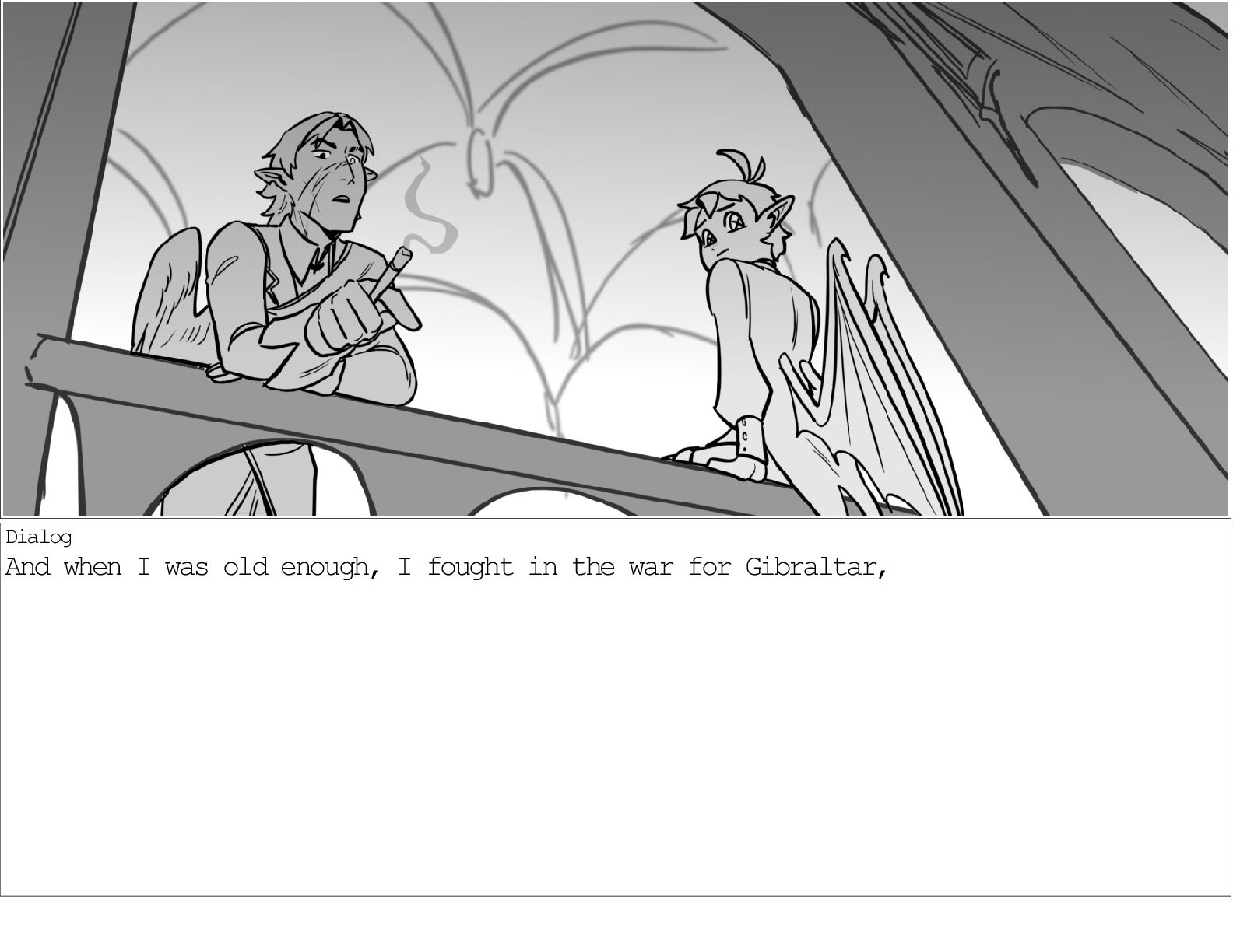A dialogue scene between two characters from my webcomic Contingency. Done during a dialogue workshop with Warrior Art Camp. Instructor: Alex Chiu