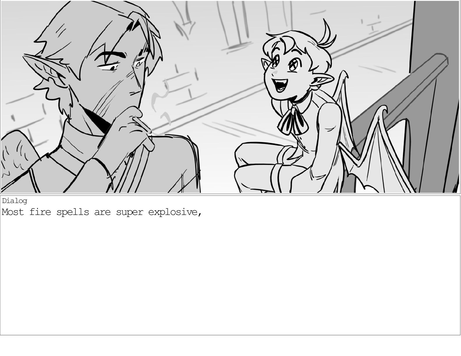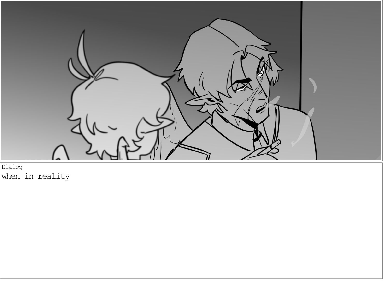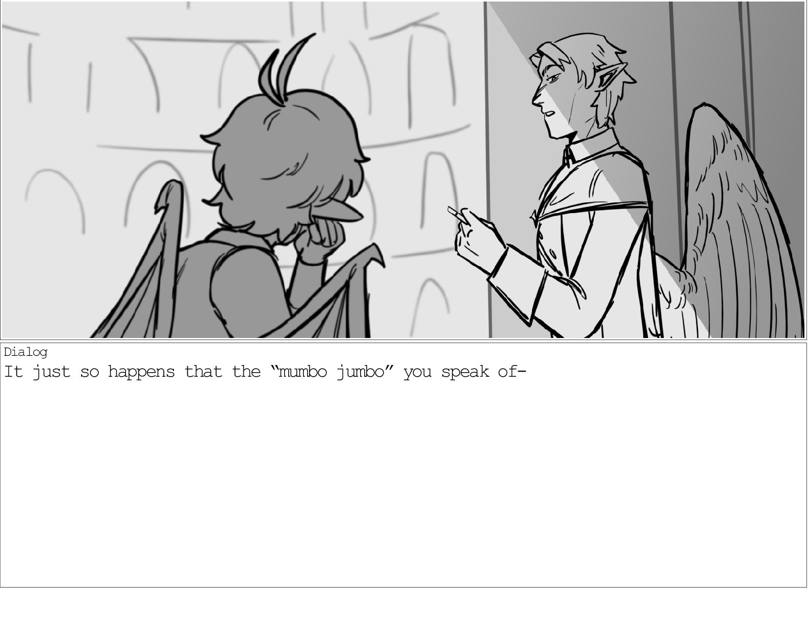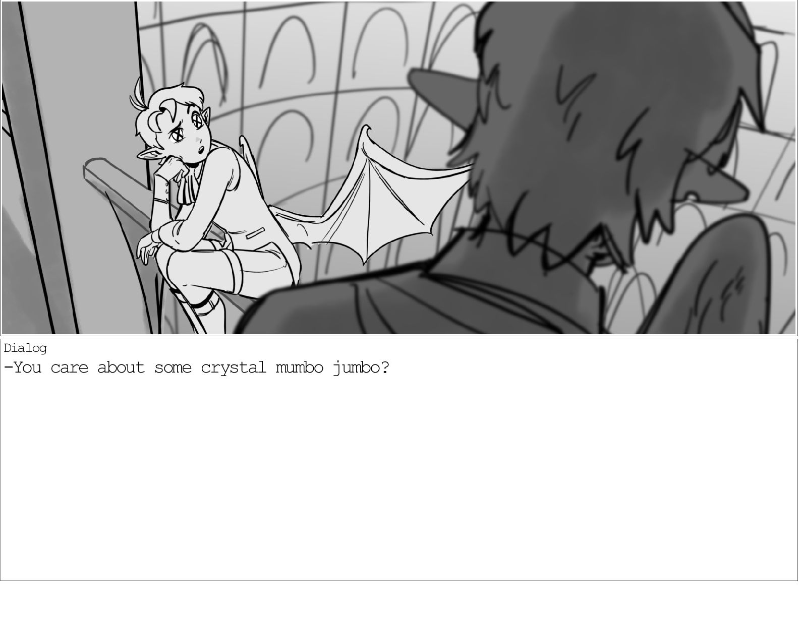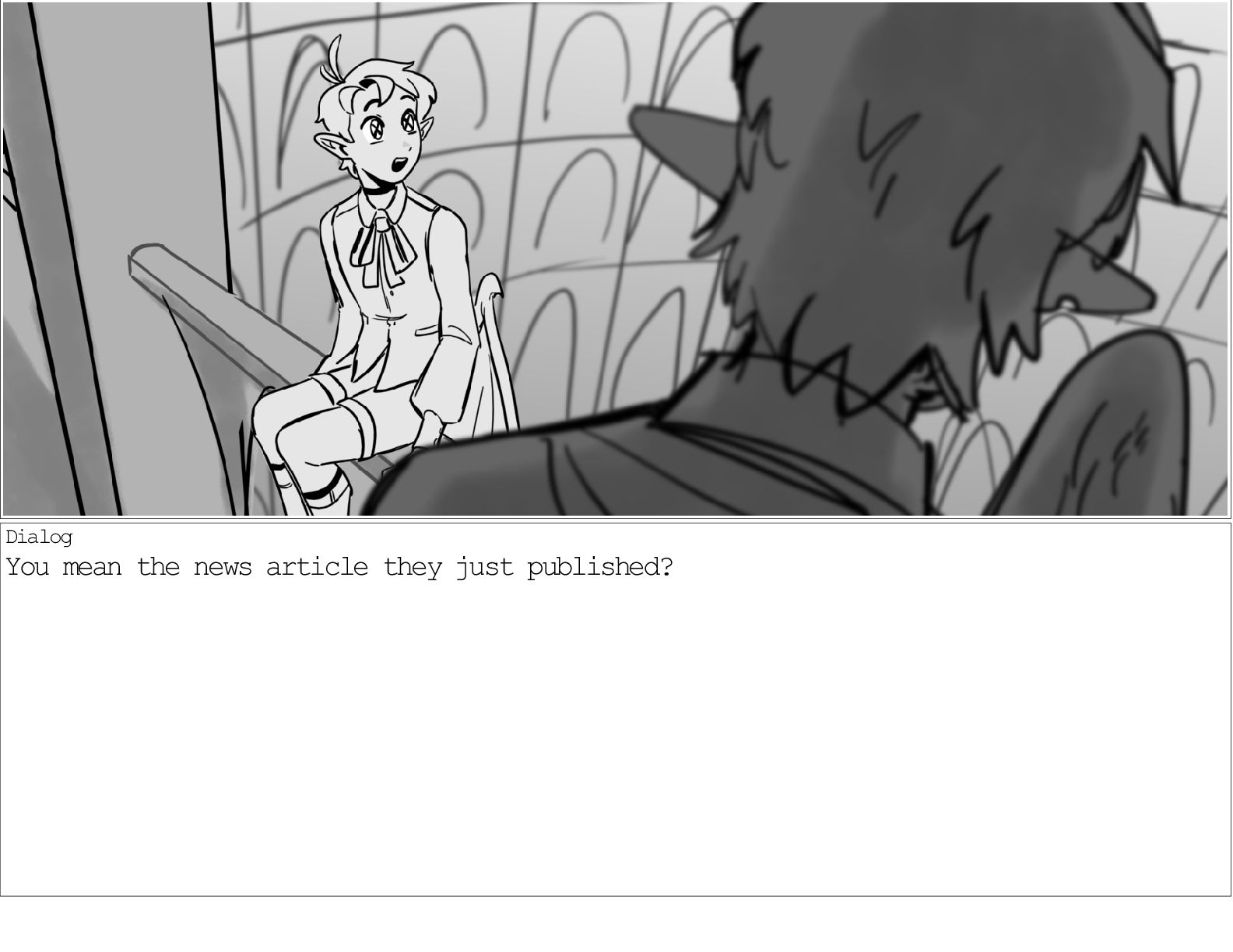 A dialogue scene between two characters from my webcomic Contingency. Done during a dialogue workshop with Warrior Art Camp. Instructor: Alex Chiu