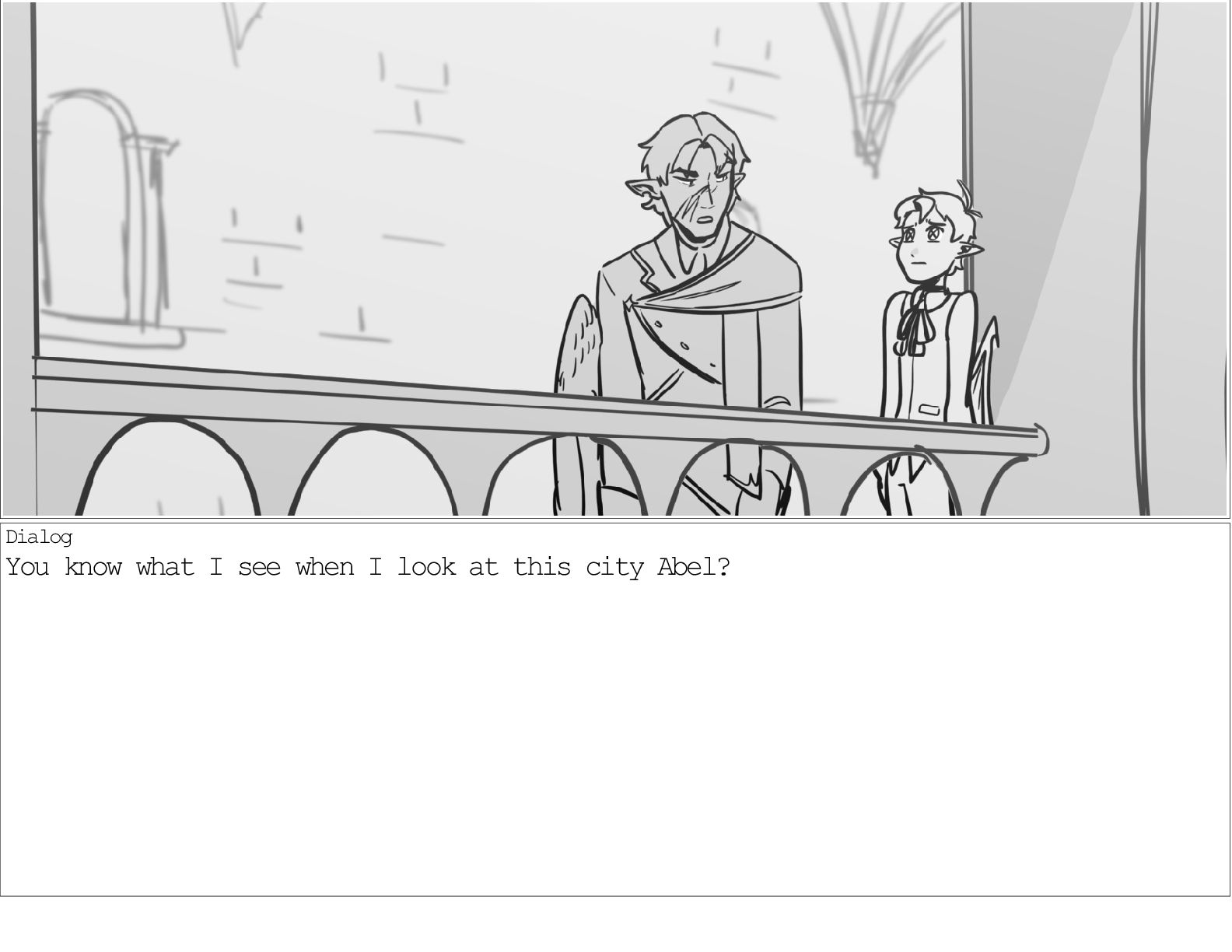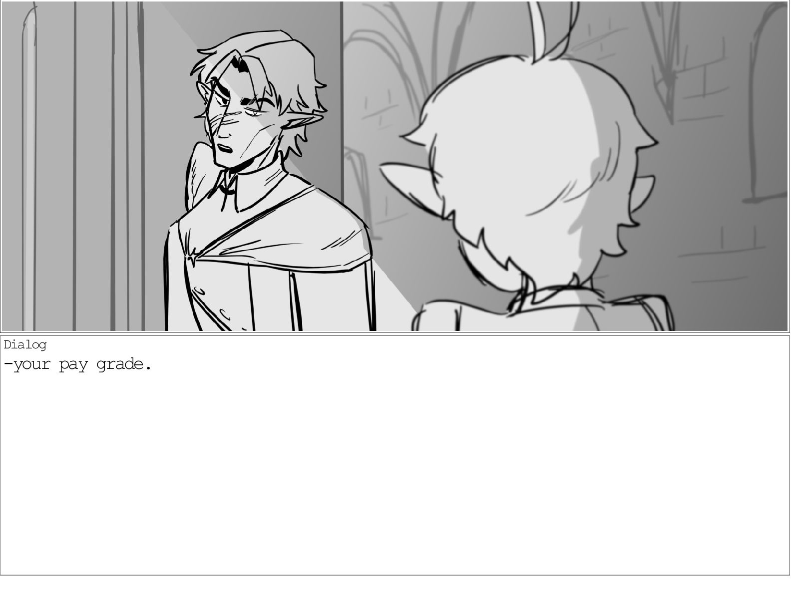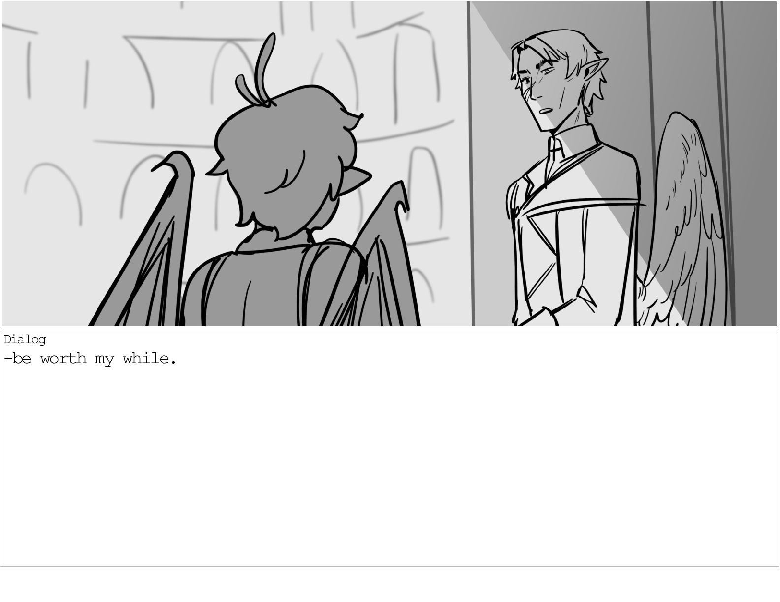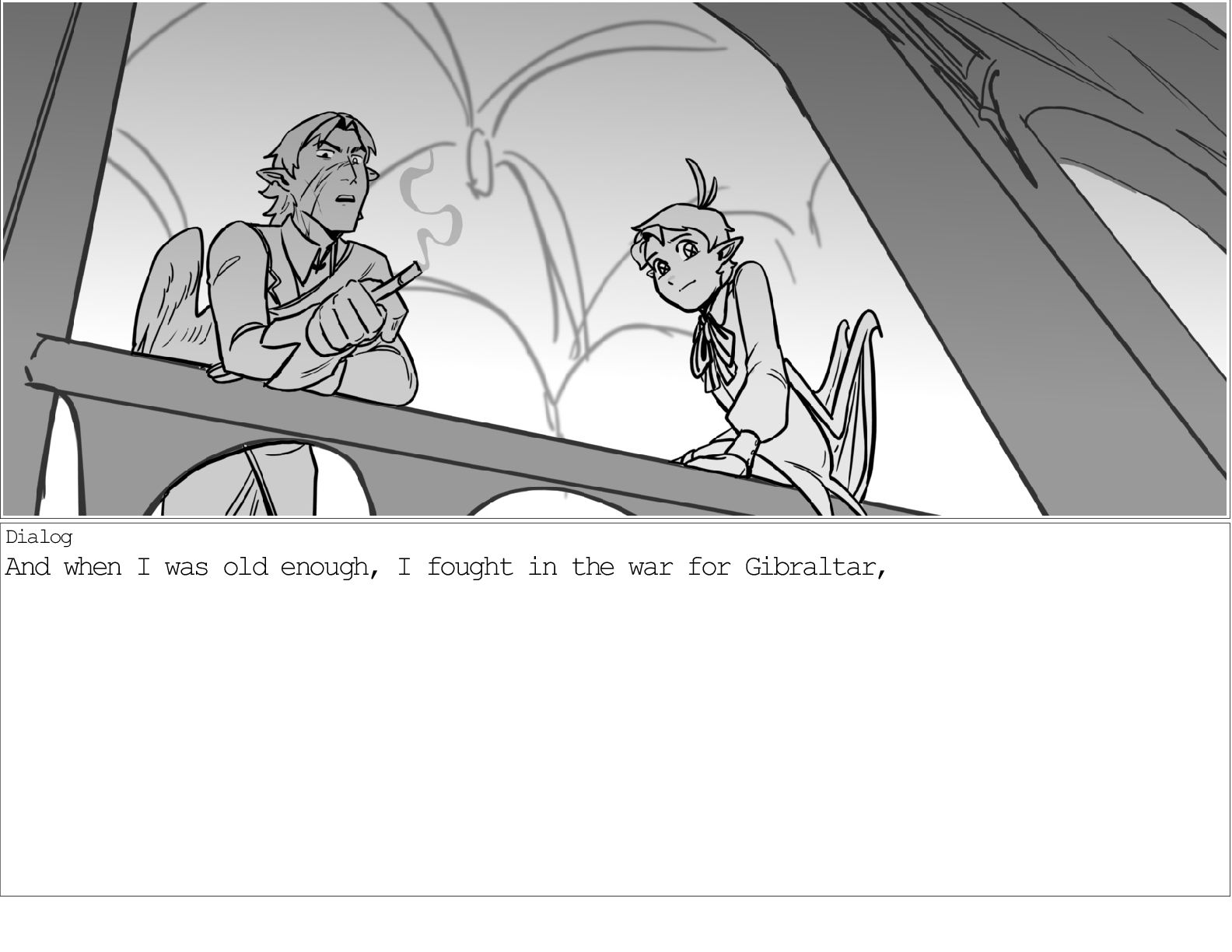 A dialogue scene between two characters from my webcomic Contingency. Done during a dialogue workshop with Warrior Art Camp. Instructor: Alex Chiu