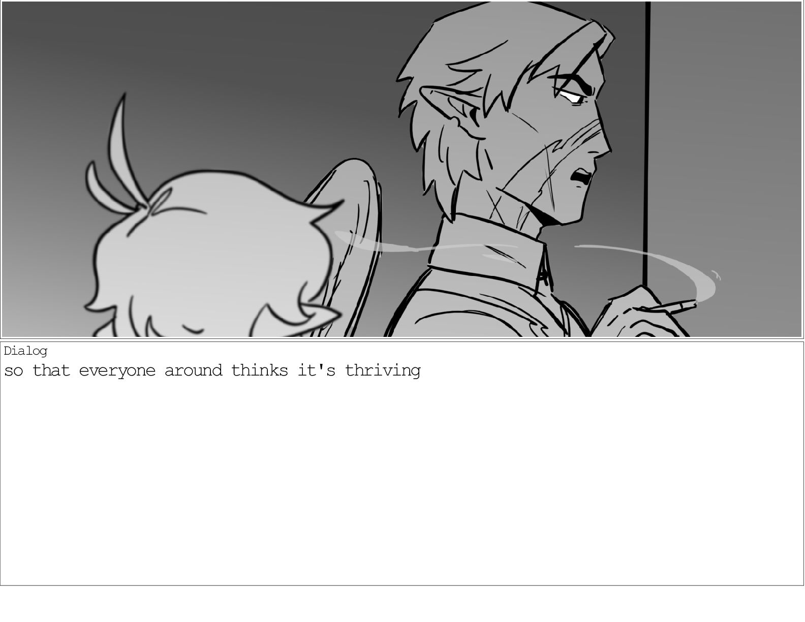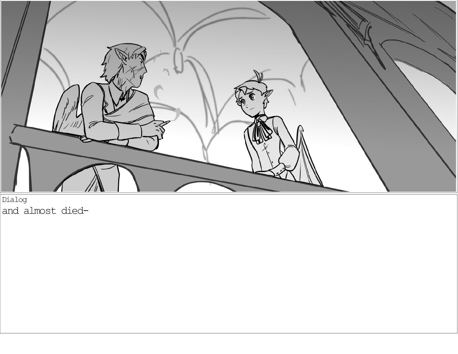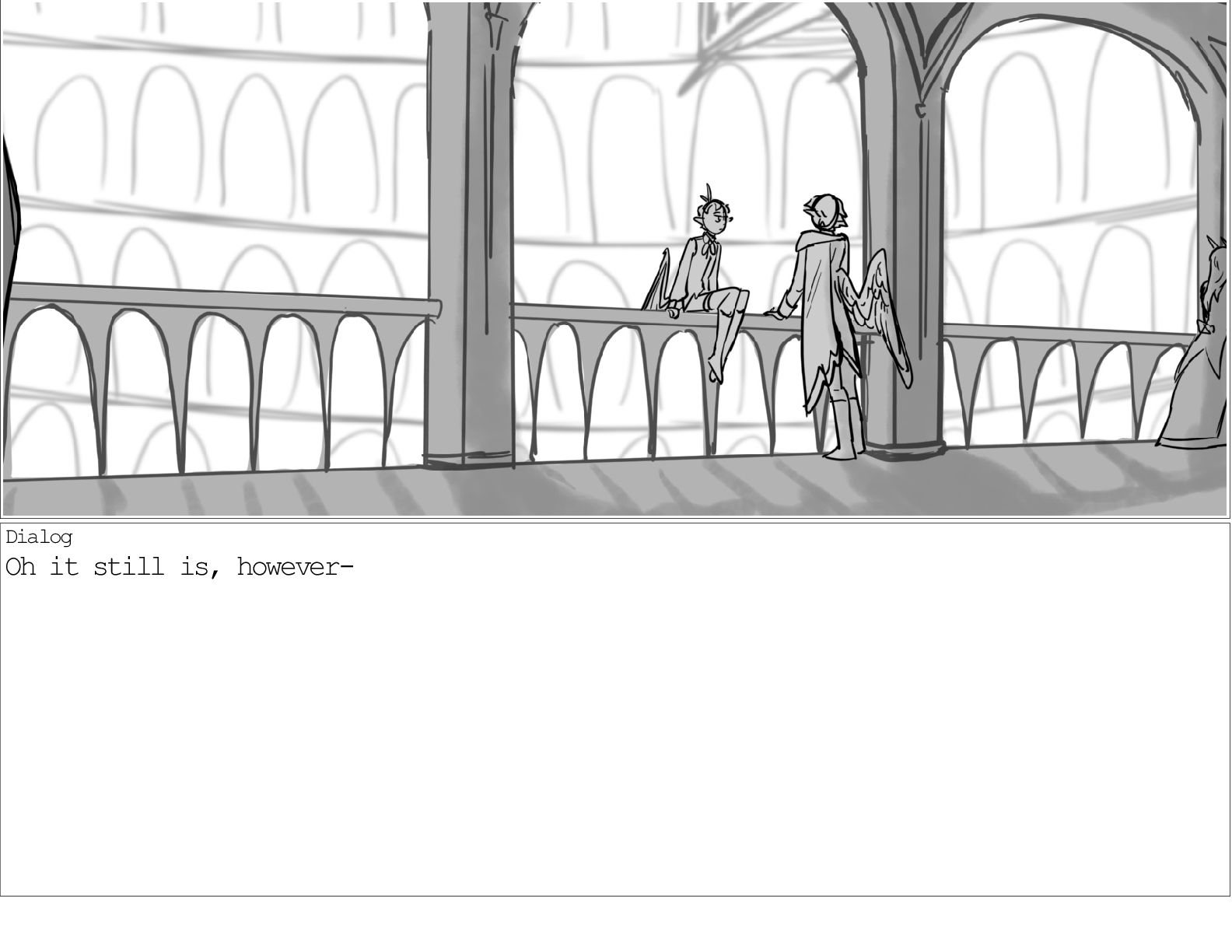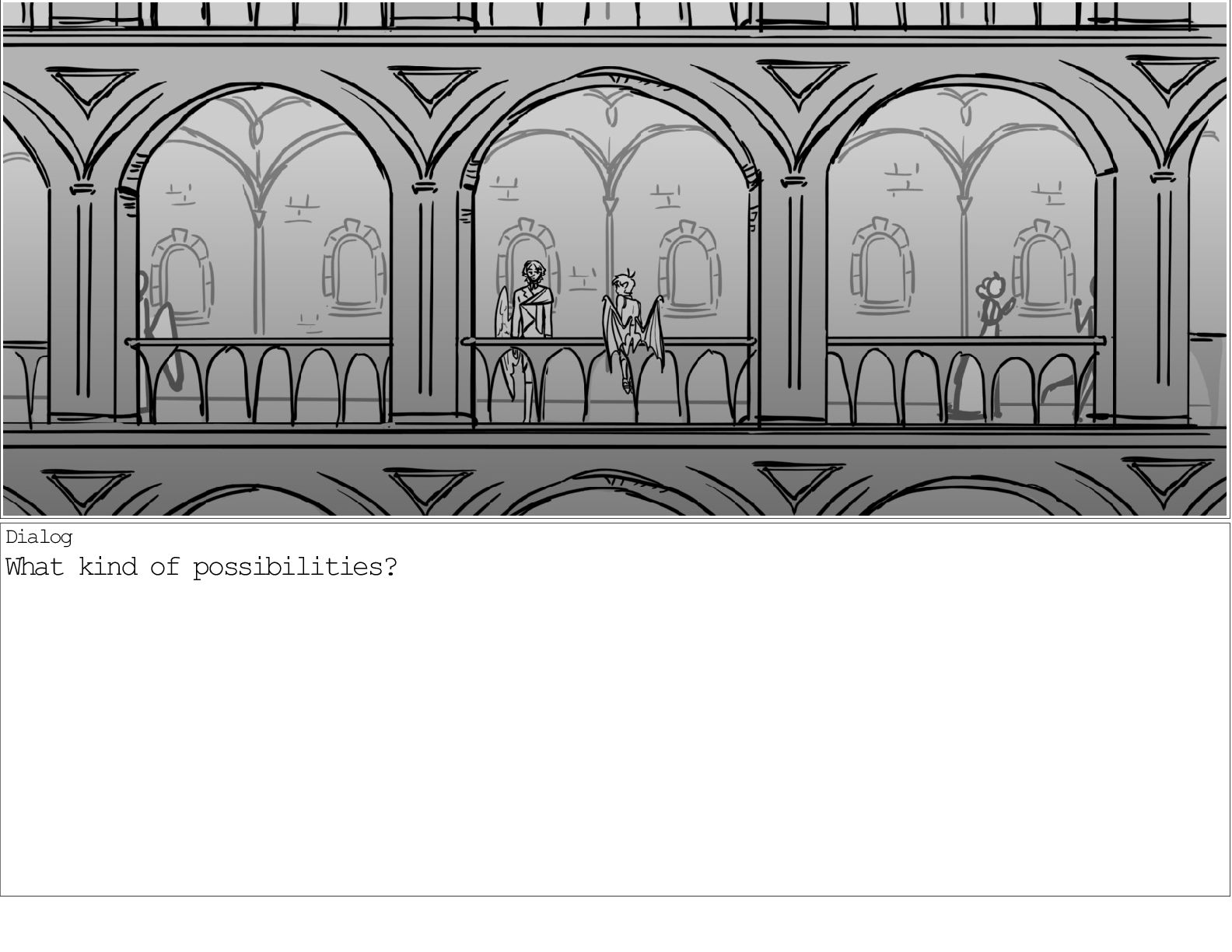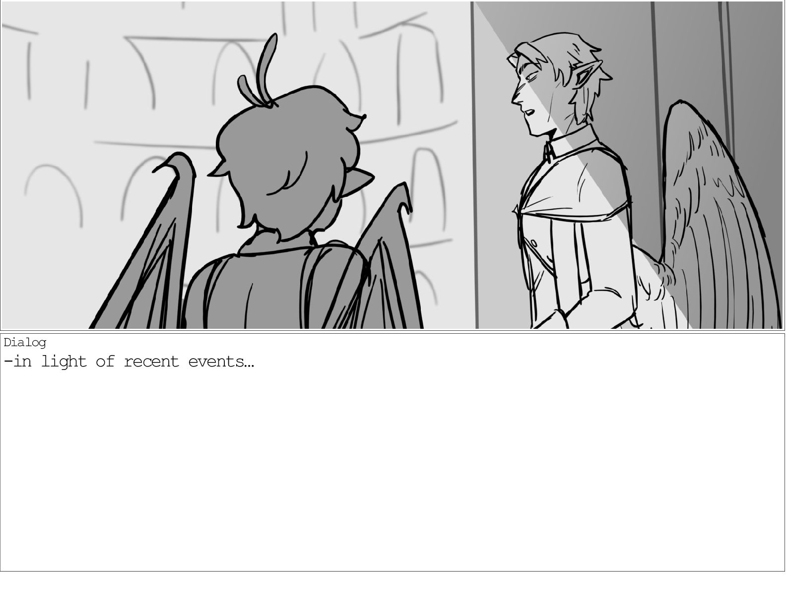 A dialogue scene between two characters from my webcomic Contingency. Done during a dialogue workshop with Warrior Art Camp. Instructor: Alex Chiu