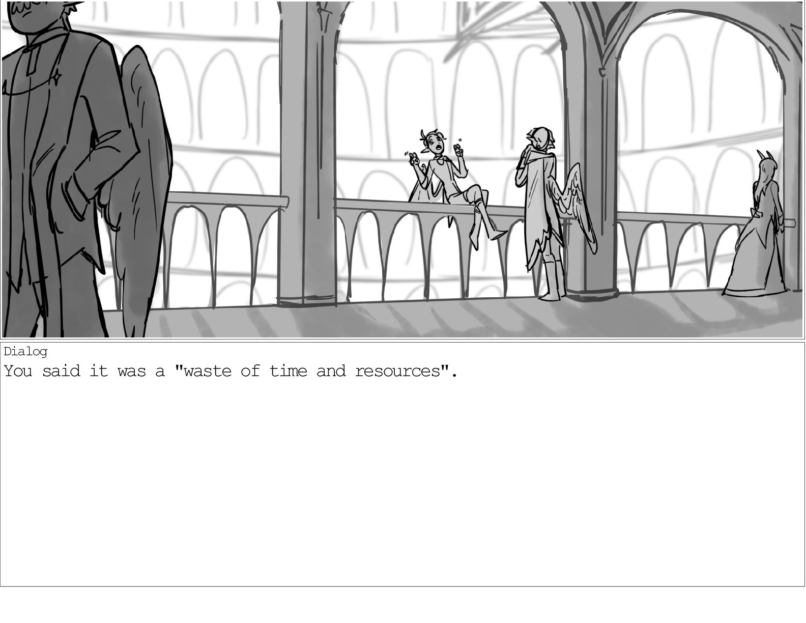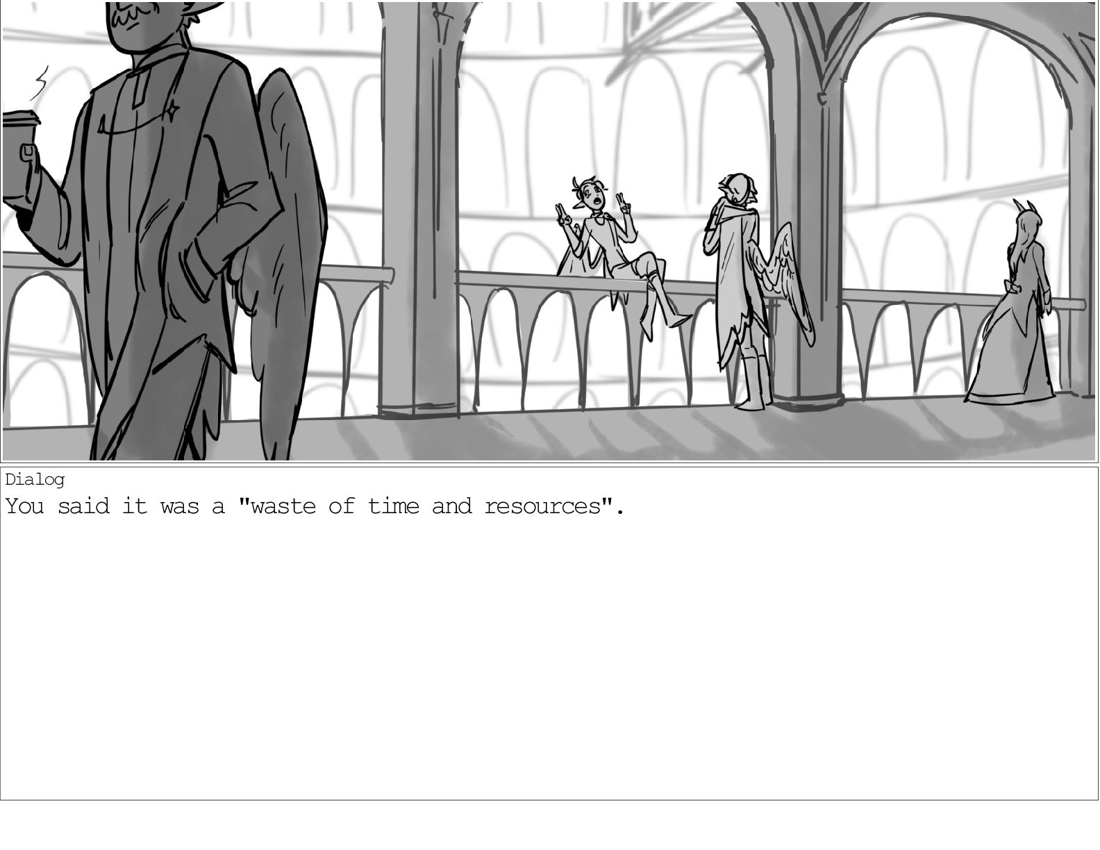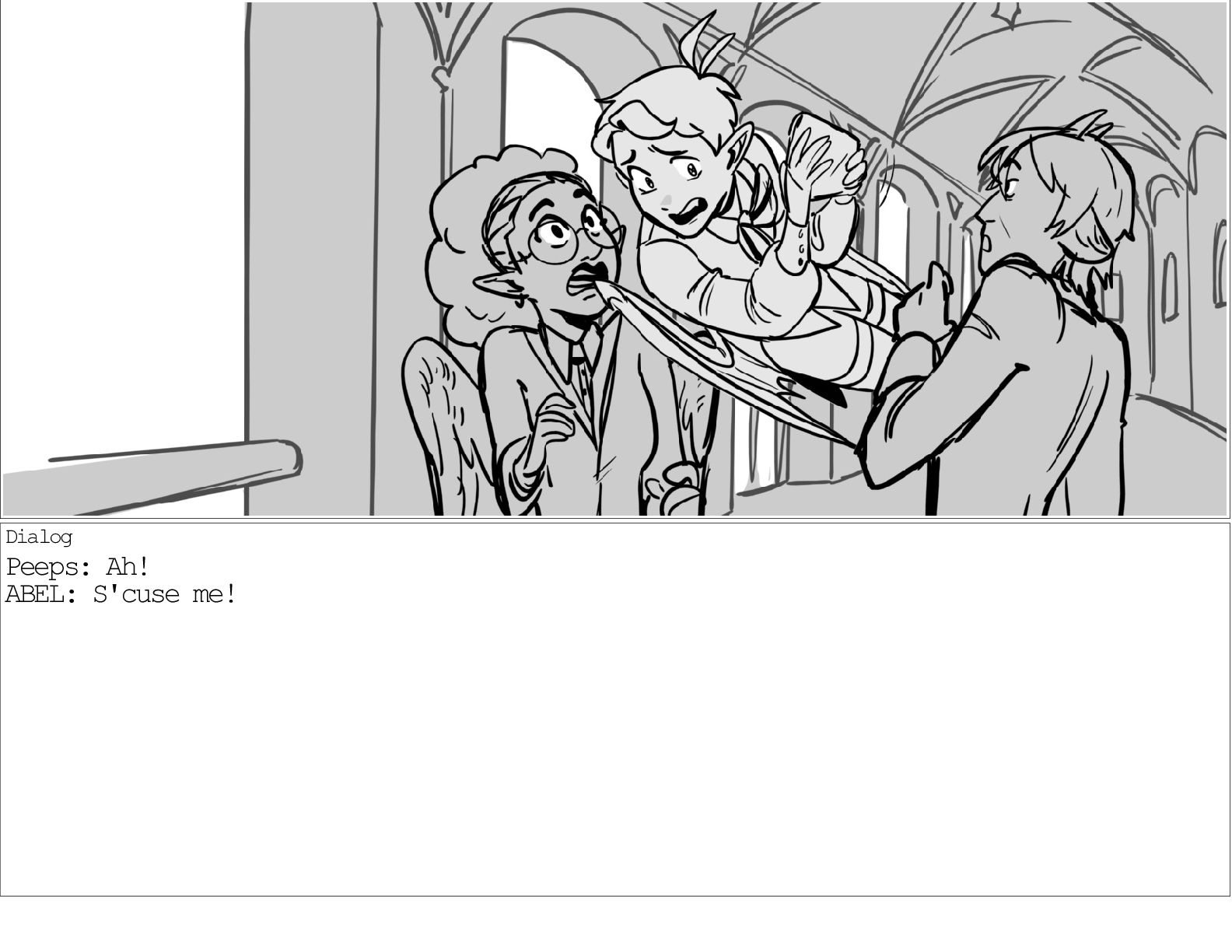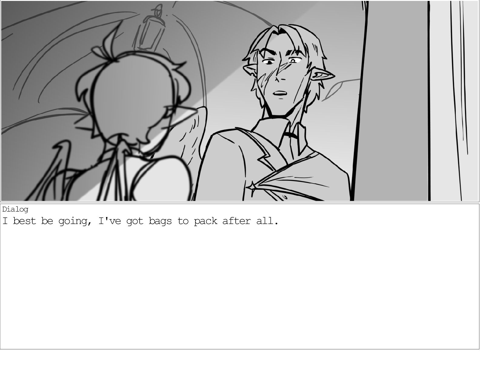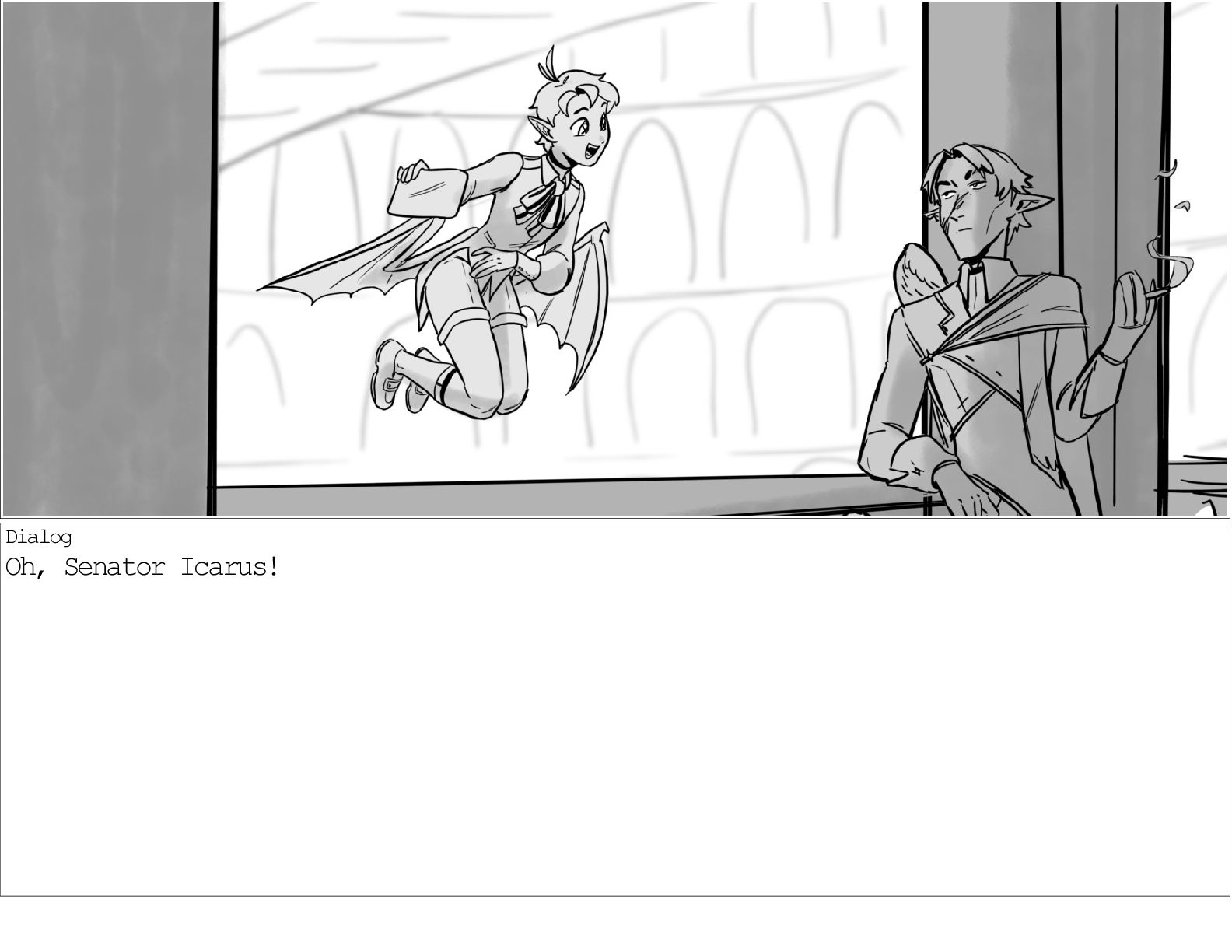 A dialogue scene between two characters from my webcomic Contingency. Done during a dialogue workshop with Warrior Art Camp. Instructor: Alex Chiu