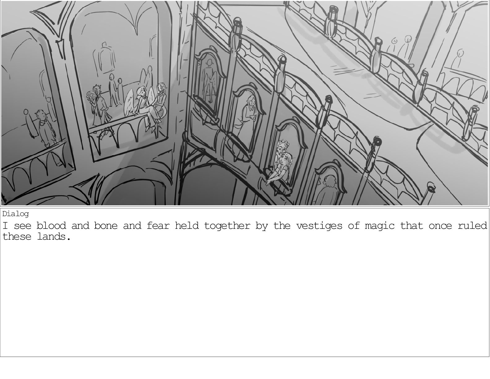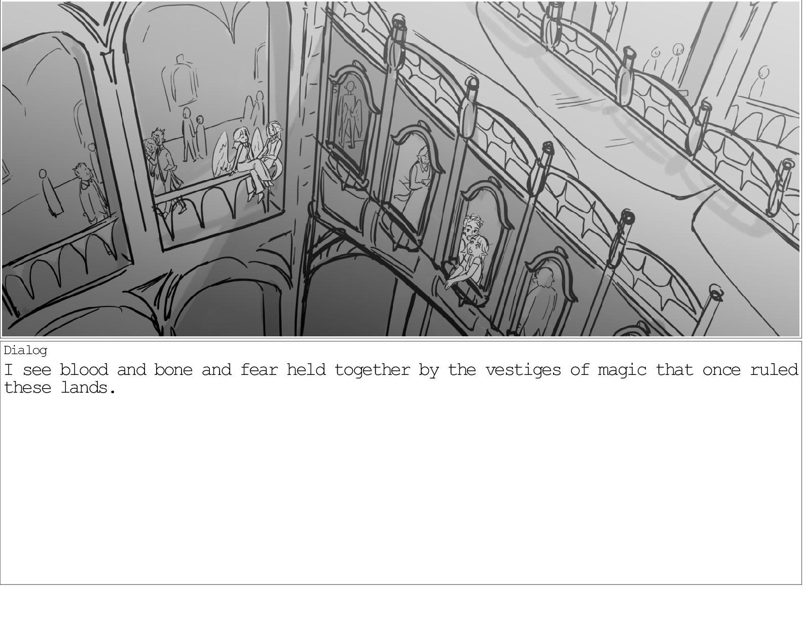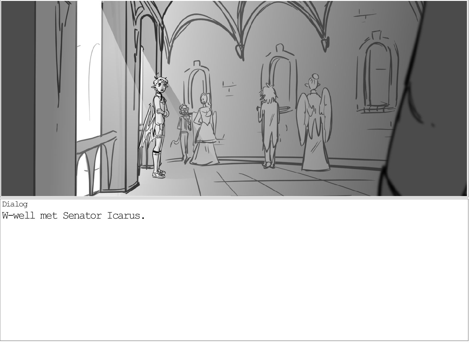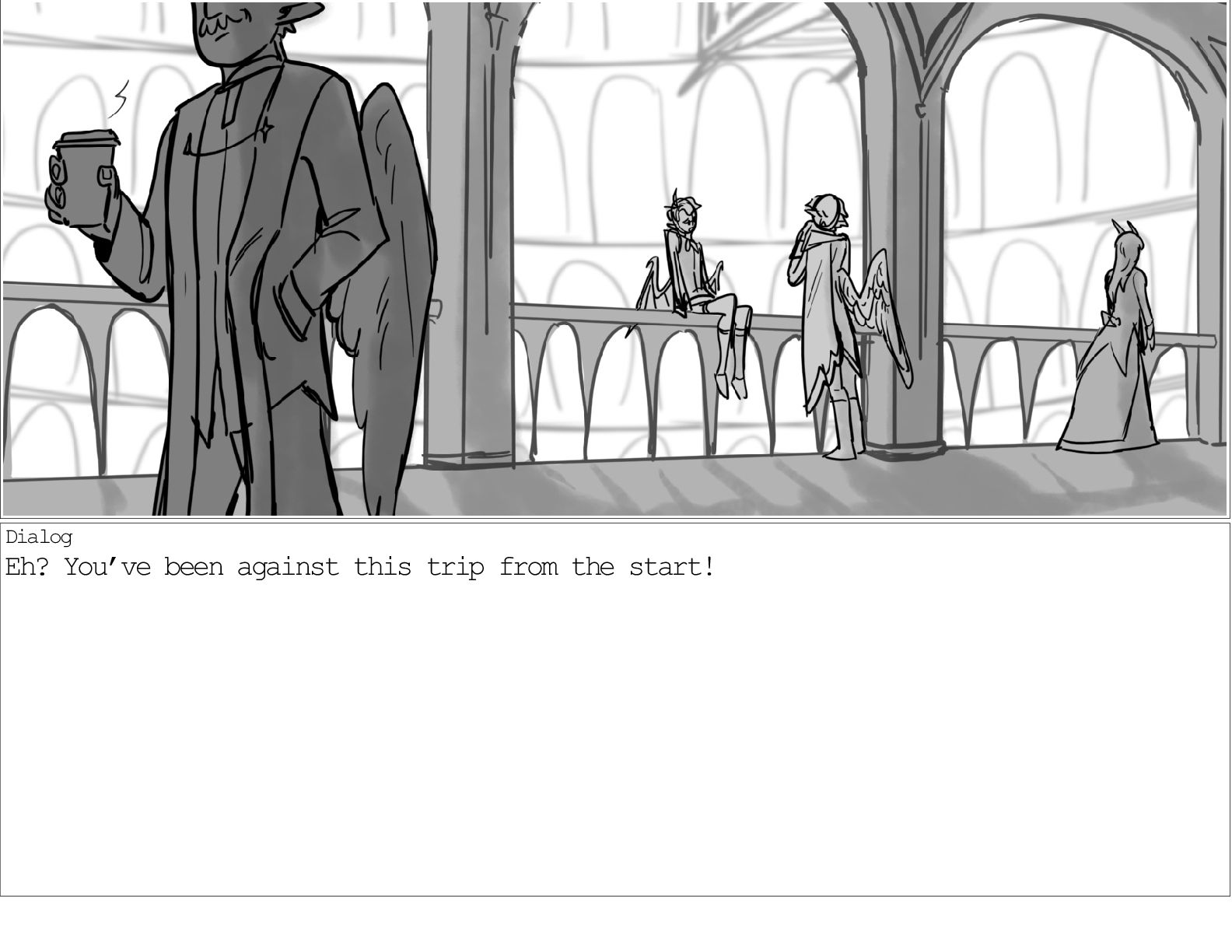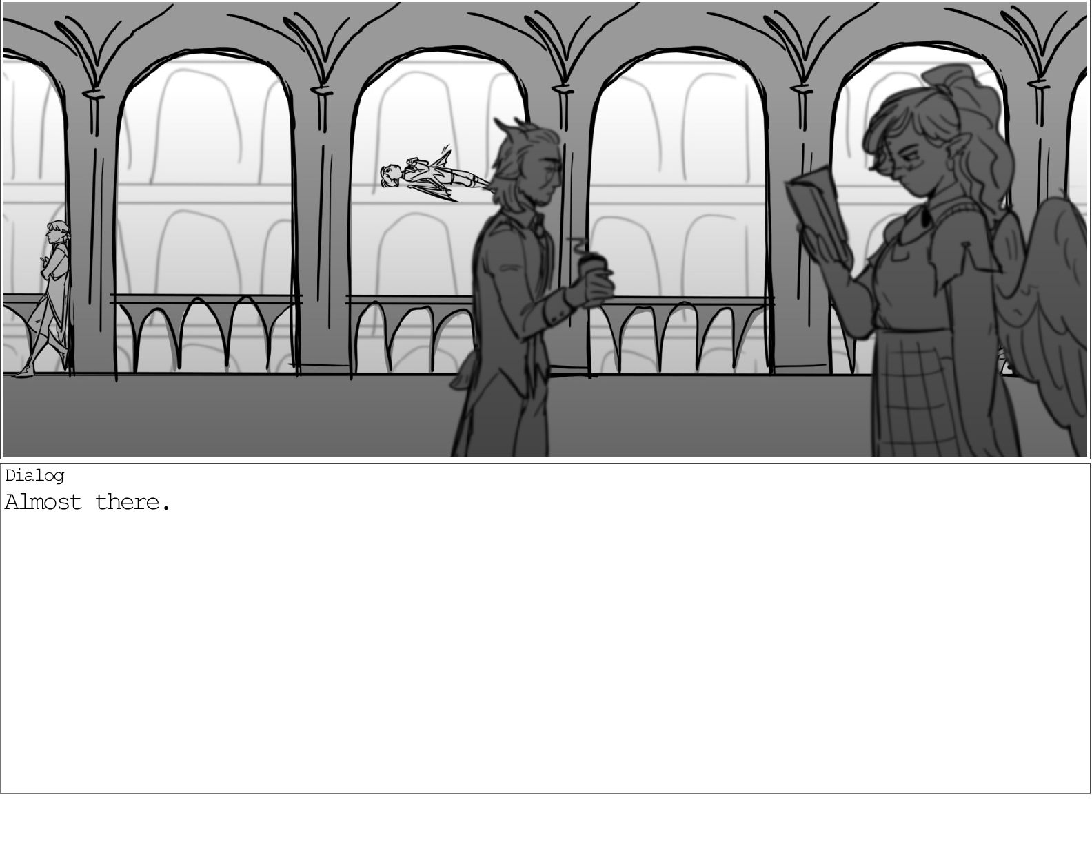 A dialogue scene between two characters from my webcomic Contingency. Done during a dialogue workshop with Warrior Art Camp. Instructor: Alex Chiu