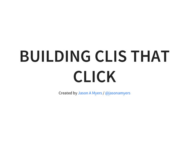 BUILDING CLIS THAT CLICK Created by / Jason A Myers