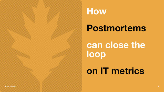 The point of a postmortem is to learn. In this presentation, Jason Hand demonstrates how they also help close the (OODA) loop on IT Metrics. Originally a webinar, you can view and hear the recording here: https://victorops.com/knowledge-drop/webinars/post-mortems-can-close-loop-metrics/