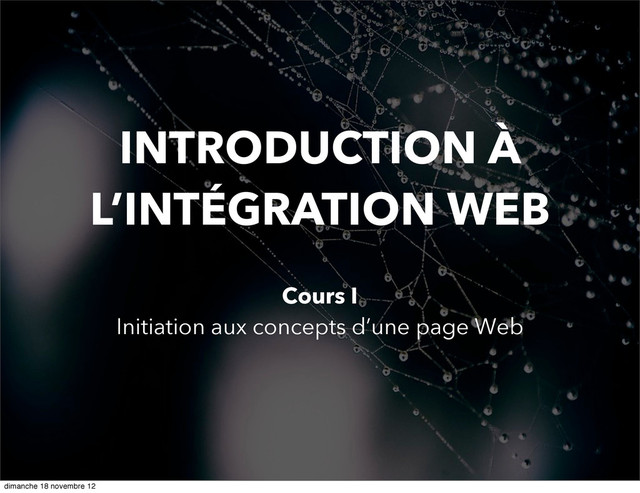 du titre <title>Le nom de cette page</title> Et des feuilles de style <link rel="stylesheet" href="css/style.css"> Sans oublier les balises <meta> et <script> dimanche 18 novembre 12