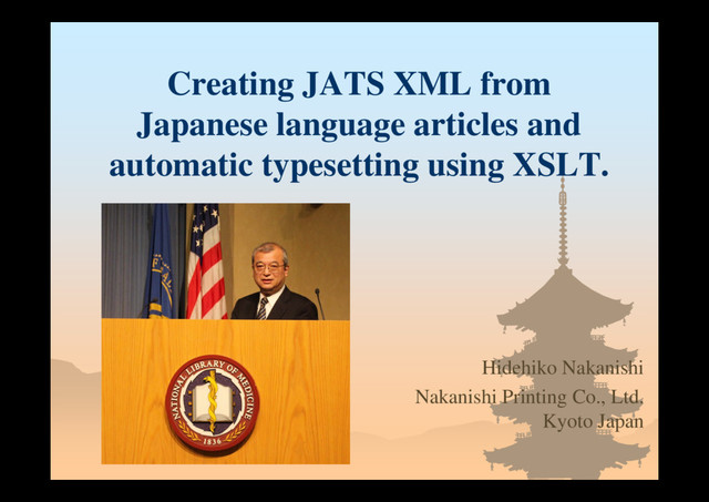 Speaker 1 "Creating JATS XML from Japanese language articles and automatic typesetting using XSLT"