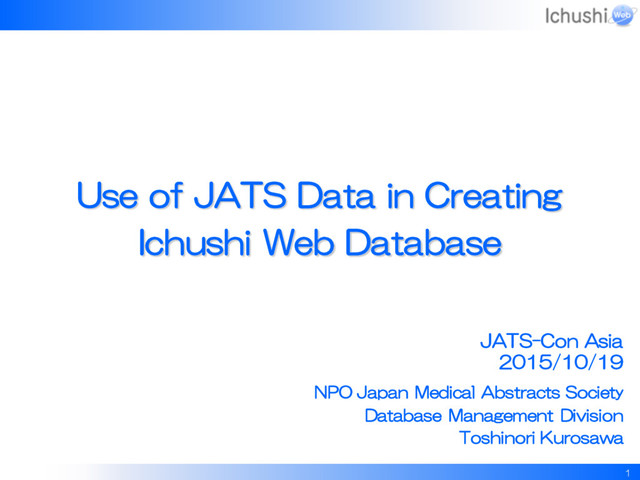 Materials: https://speakerdeck.com/jatsconasiasc/jats-con-asia-20151019-04-toshinori-kurosawa