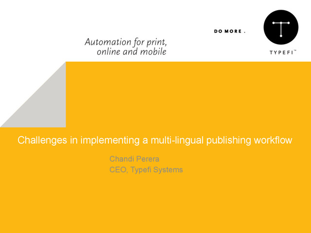 Speaker 3 "Challenges in implementing a multi-lingual publishing workflow"