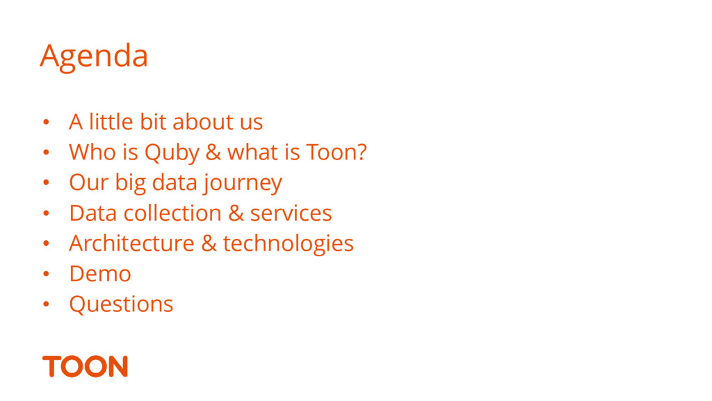 300K customers • Near Real Time aggregation with segmentation • 400 signal/5 minutes • Sharing Measurement data with tenants 2015 • 190K customers • Apache storm for Near Real Time Energy consumption (3K customers) • Data analysis using Cloudera stack • Up to 10 seconds resolution 2016 • 330K customers • Collect data from 230K customers anonymously • Data as a service • Analytics platform as a service