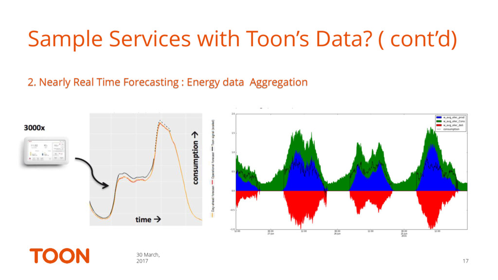 – data as a service for B2B (and researchers) • Analytic platform as a service • New data driven services for Toon users • Improve existing services • Marketing strategy (understand your customers) 30 March, 2017 29