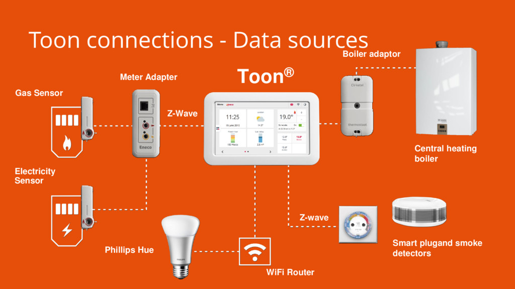 and user interaction data. If you want to know more please contact us : [email protected] 14 Energy CH-boiler (OT) Thermostat Gas consumption Electricity consumption Water temperature Service messages Burner information Room temperature Thermostat program Manual settings Plug-data Electricity consumption On/off Water pressure Energy production Energy feed-in Boiler status Touch events Thermostat Mobile 1 2 3 4 5 Thermostat setting Hue data