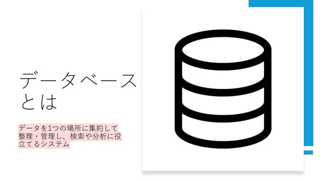 AUTO_INCREMENT PRIMARY KEY, name VARCHAR(255) NOT NULL, email VARCHAR(255) NOT NULL ) User 整数型 id (主キー) ⽂字列型 name (⾮null) ⽂字列型 email (⾮null) さっき説明したUserTBを作成する VARCHER(255)とは255 バイトまでの⽂字列を可変⻑フィールドに保管 AUTO_INCREMENTとはidの値を⾃動で1ずつ増やして格納するようにすること