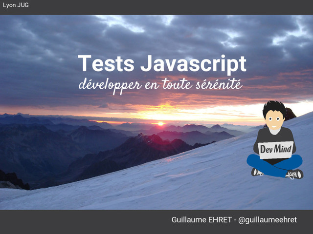 Slides présentés au JUG Lyon le 26 janvier 2017. Le principe étant de montrer à un développeur full stack Java comme moi que les tests en Javascript sont aussi importants que ceux en Java et aussi simples à mettre en place