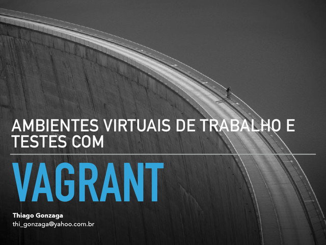 construção de ambientes de desenvolvimento ▸ Foco em automação ▸ Facilita a configuração do seu ambiente de trabalho ▸ Facilita a reprodução de ambientes como produção ▸ Utiliza virtualização ▸ Flexível: VMware, VirtualBox, Docker, Hyper-V e/ou AWS ▸ Pode utilizar provedores customizados ▸ Fácil configuração, sintaxe do Ruby