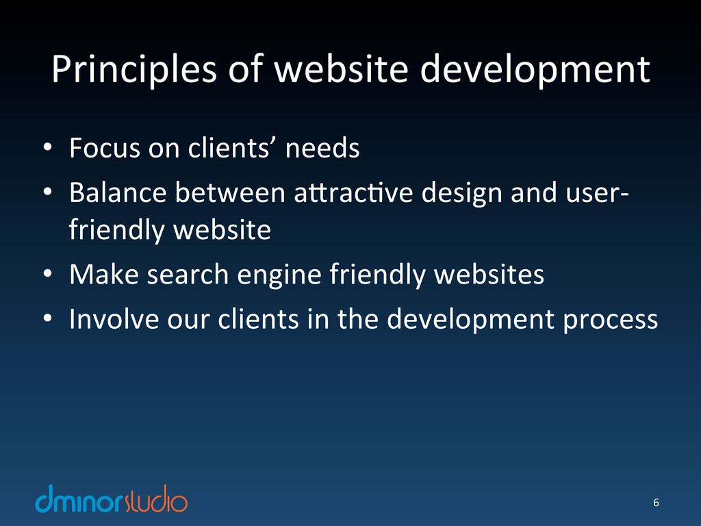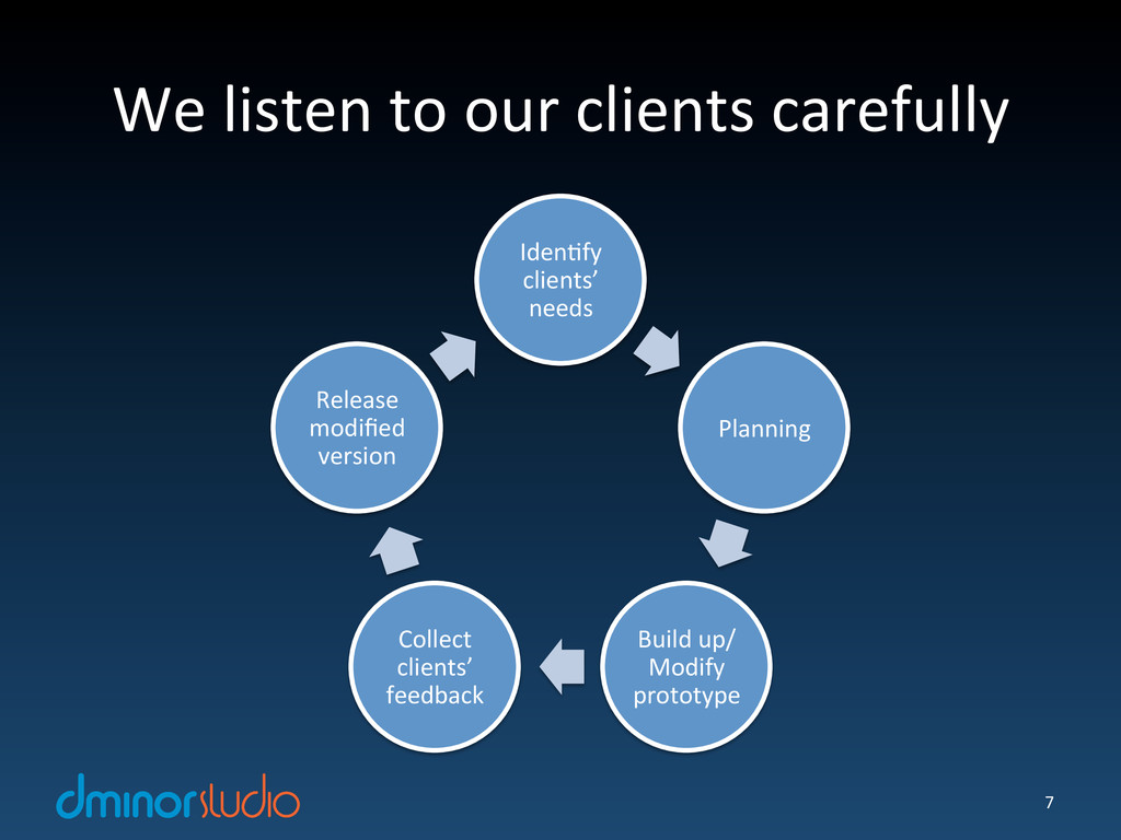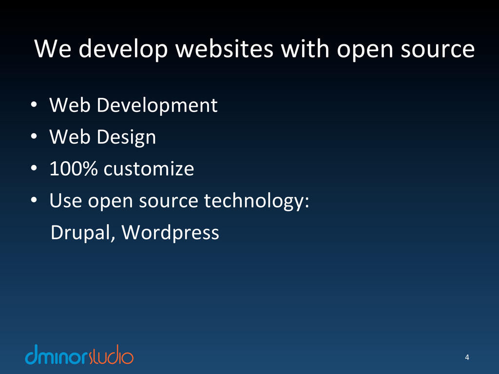 dminorstudio is an internet company with focus on open source software. We believe that great internet products are combinations of design, technology and user experience. We hope to utilize our internet knowledge and experience to assist our clients in creating great products.