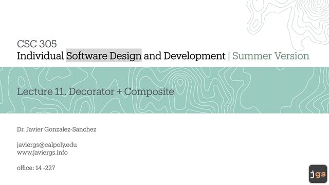 a nge how a n object beh a ves. • The decor a tor p a ttern a llows you to extend (decor a te) the function a lity of a n object a t runtime. • Inherit a nce a dds beh a vior a t compil a tion time. 10