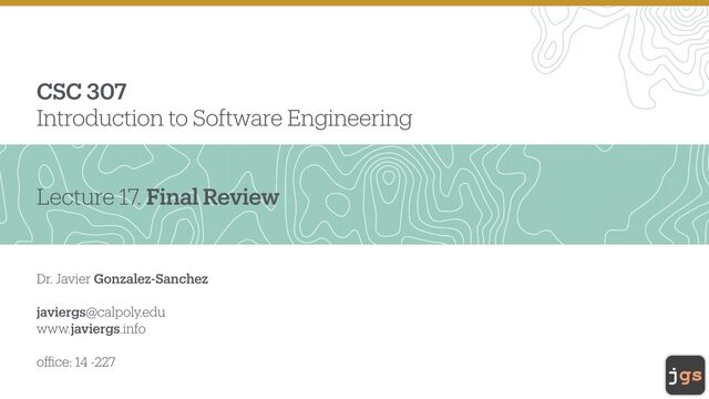 CSC 307 Introduction to Software Engineering Lecture 17. Final Review