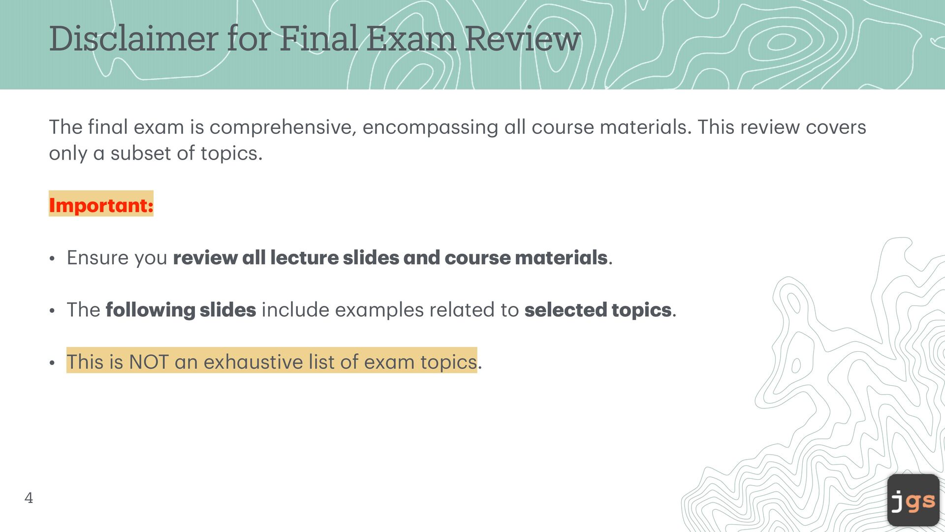 4. Disclaimer for Final Exam Review The f in a l