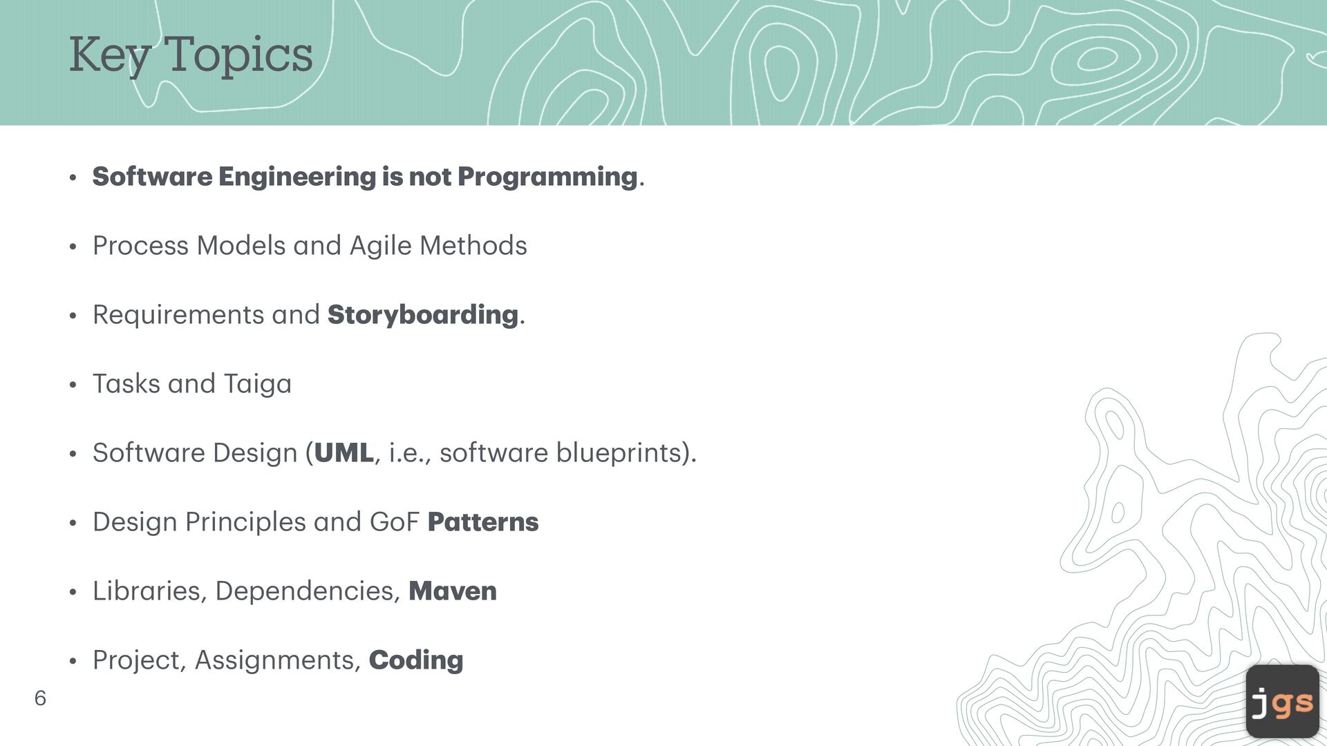 5. Key Topics • Softw a re Engineering is not Progr