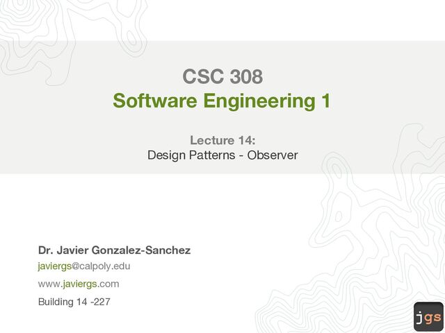 Winter 2023 Copyright. These slides can only be used as study material for the class CSC308 at Cal Poly. They cannot be distributed or used for another purpose.
