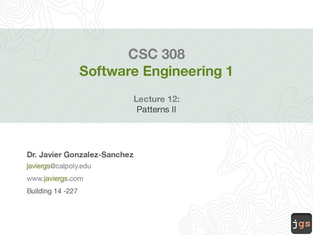Winter 2024 Copyright. These slides can only be used as study material for the class CSC 308 at Cal Poly. They cannot be distributed or used for another purpose.