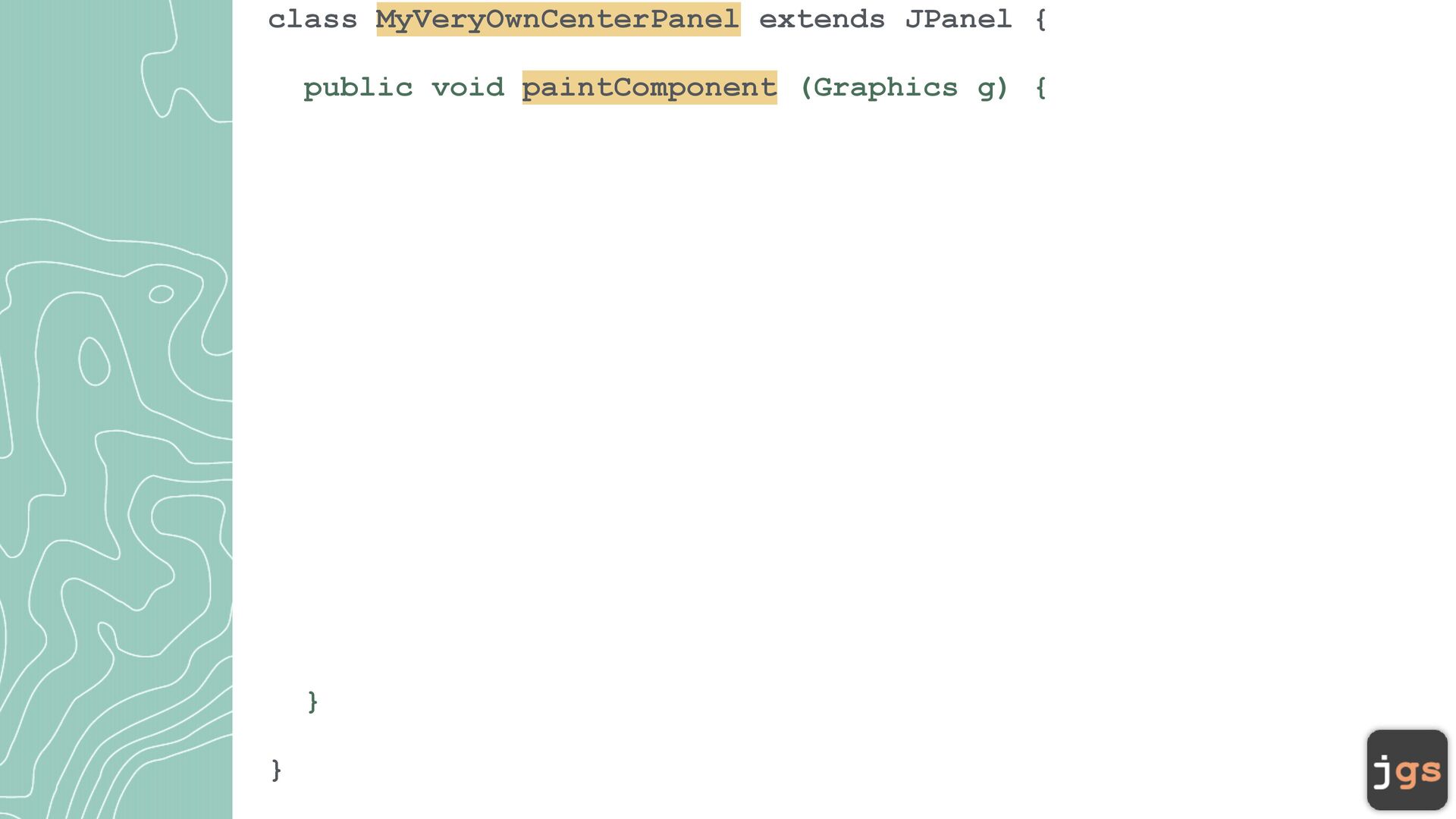 class MyVeryOwnCenterPanel extends JPanel { public void paintComponent (Graphics g)