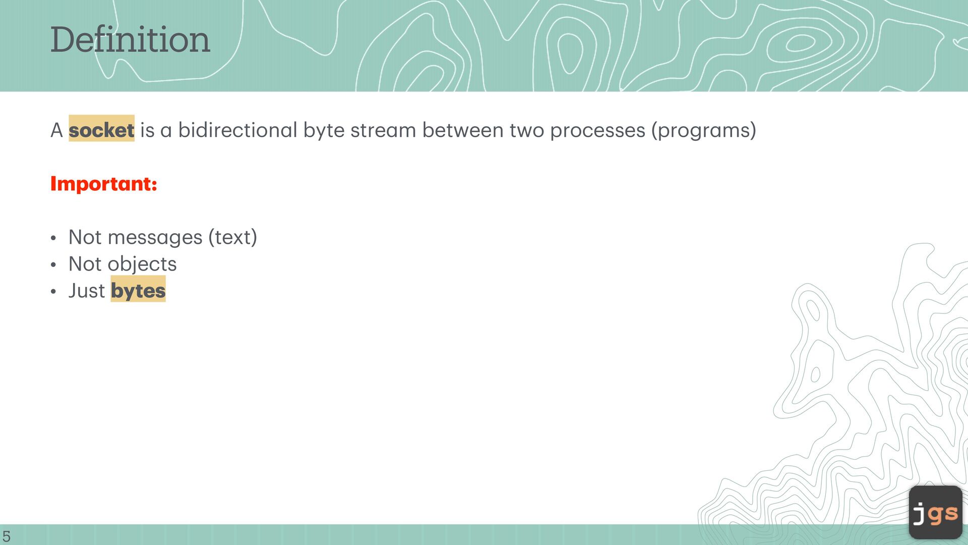 l byte stre a m between two processes (progr a ms) Import a nt: • Not mess a ges (text) • Not objects • Just bytes