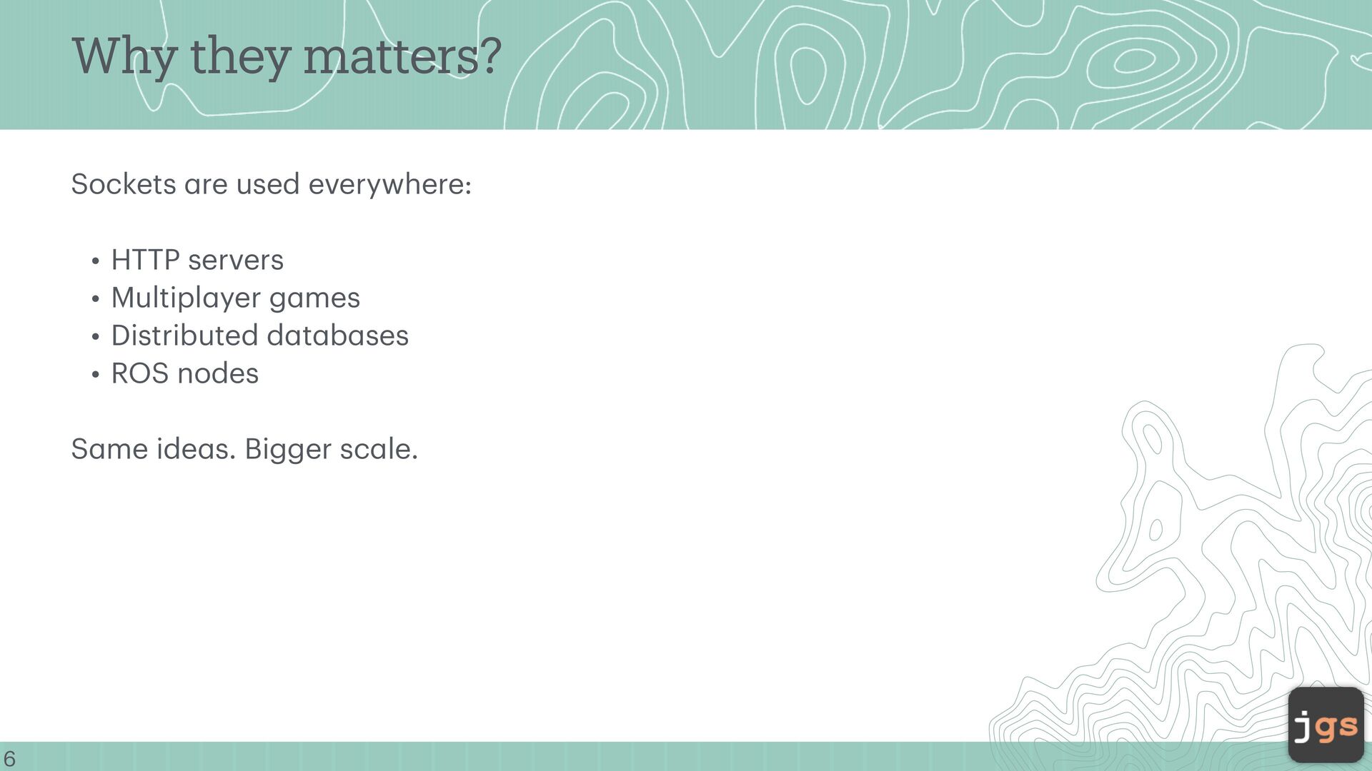 HTTP servers • Multipl a yer g a mes • Distributed d a t a b a ses • ROS nodes S a me ide a s. Bigger sc a le.