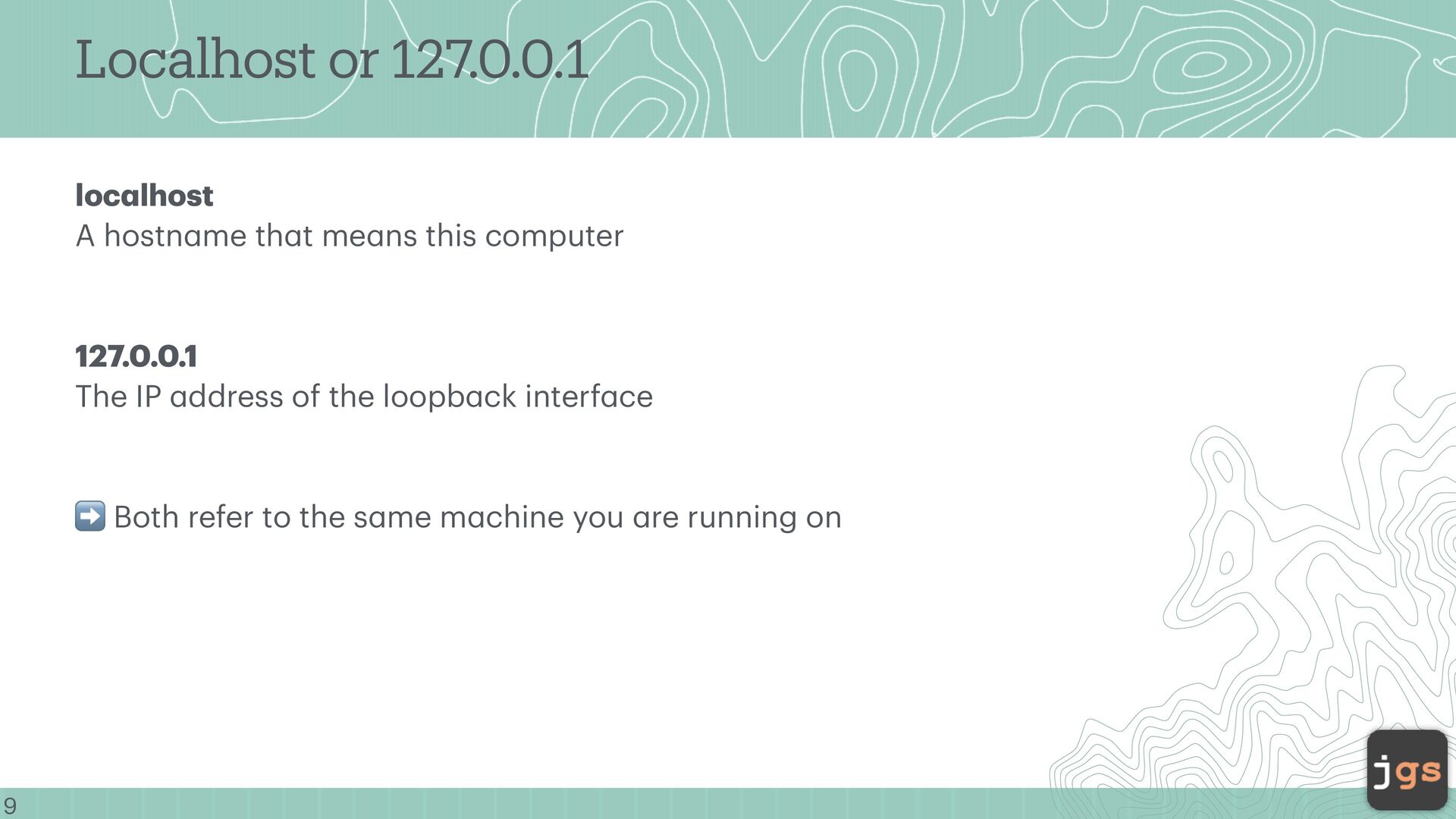 me th a t me a ns this computer 127.0.0.1 The IP a ddress of the loopb a ck interf a ce ➡ Both refer to the s a me m a chine you a re running on