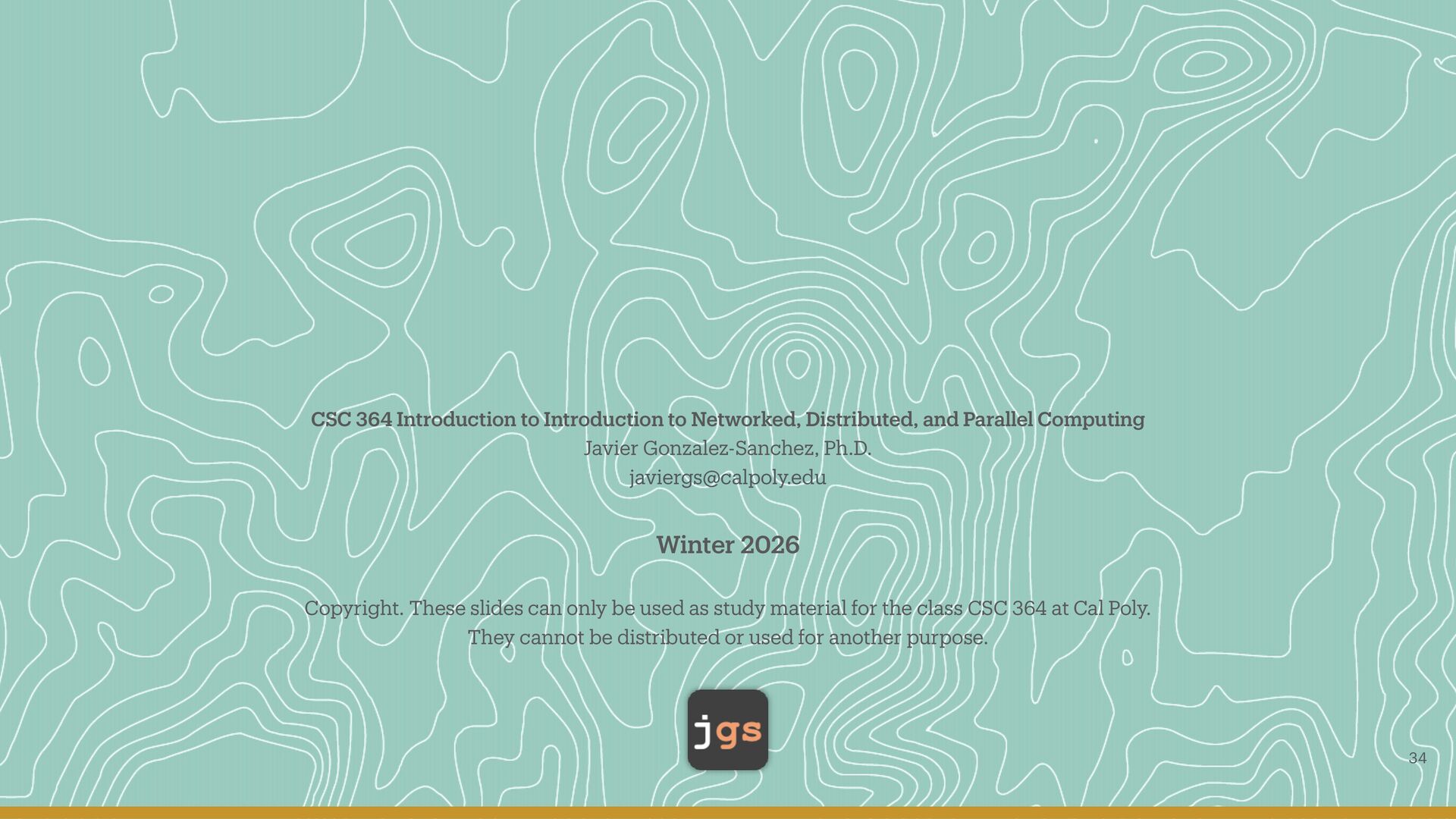 Computing Javier Gonzalez-Sanchez, Ph.D. [email protected] Winter 2026 Copyright. These slides can only be used as study material for the class CSC 364 at Cal Poly. They cannot be distributed or used for another purpose. 34