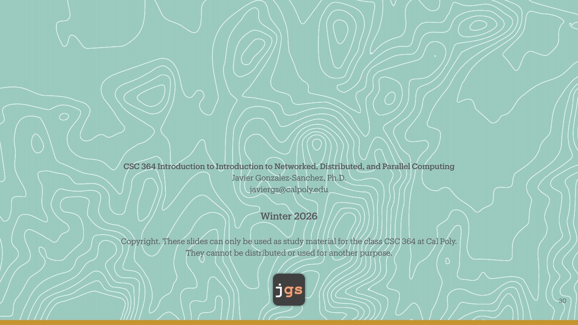 Computing Javier Gonzalez-Sanchez, Ph.D. [email protected] Winter 2026 Copyright. These slides can only be used as study material for the class CSC 364 at Cal Poly. They cannot be distributed or used for another purpose. 30