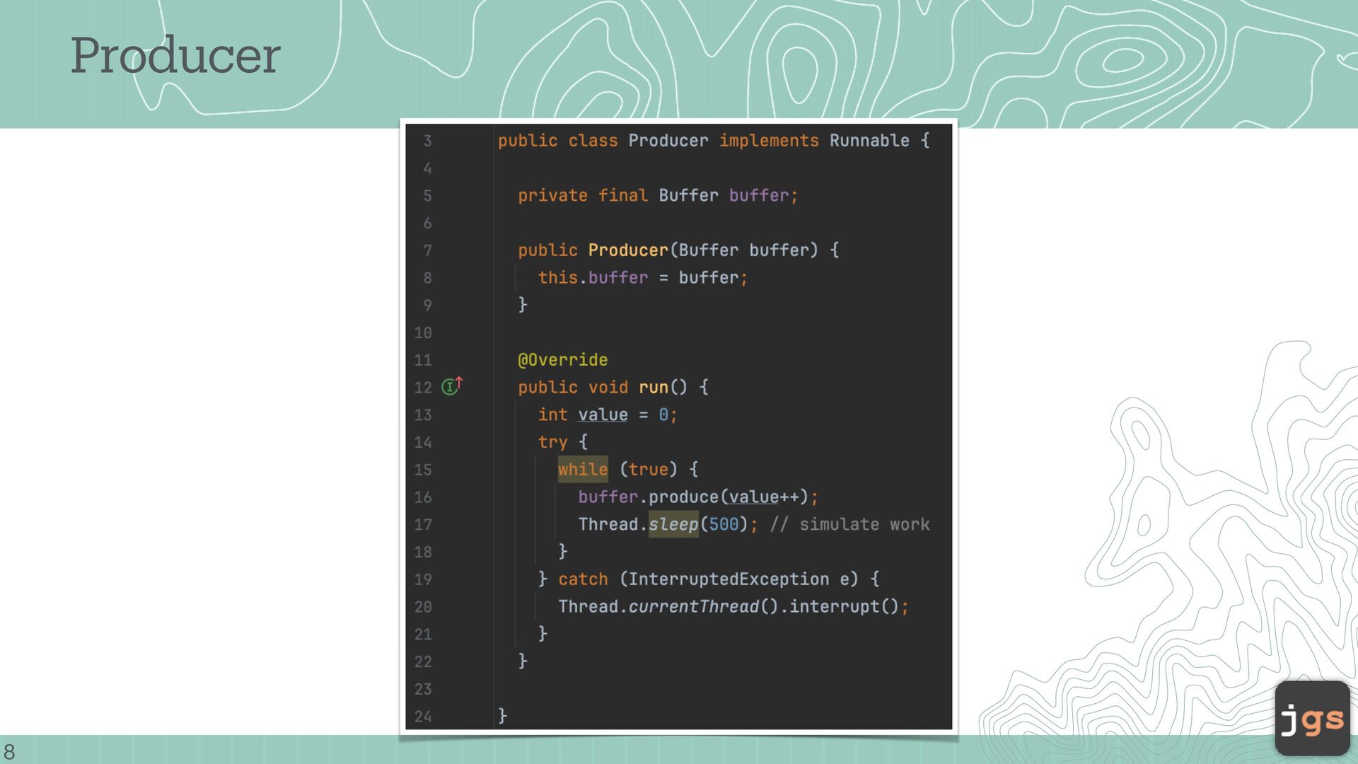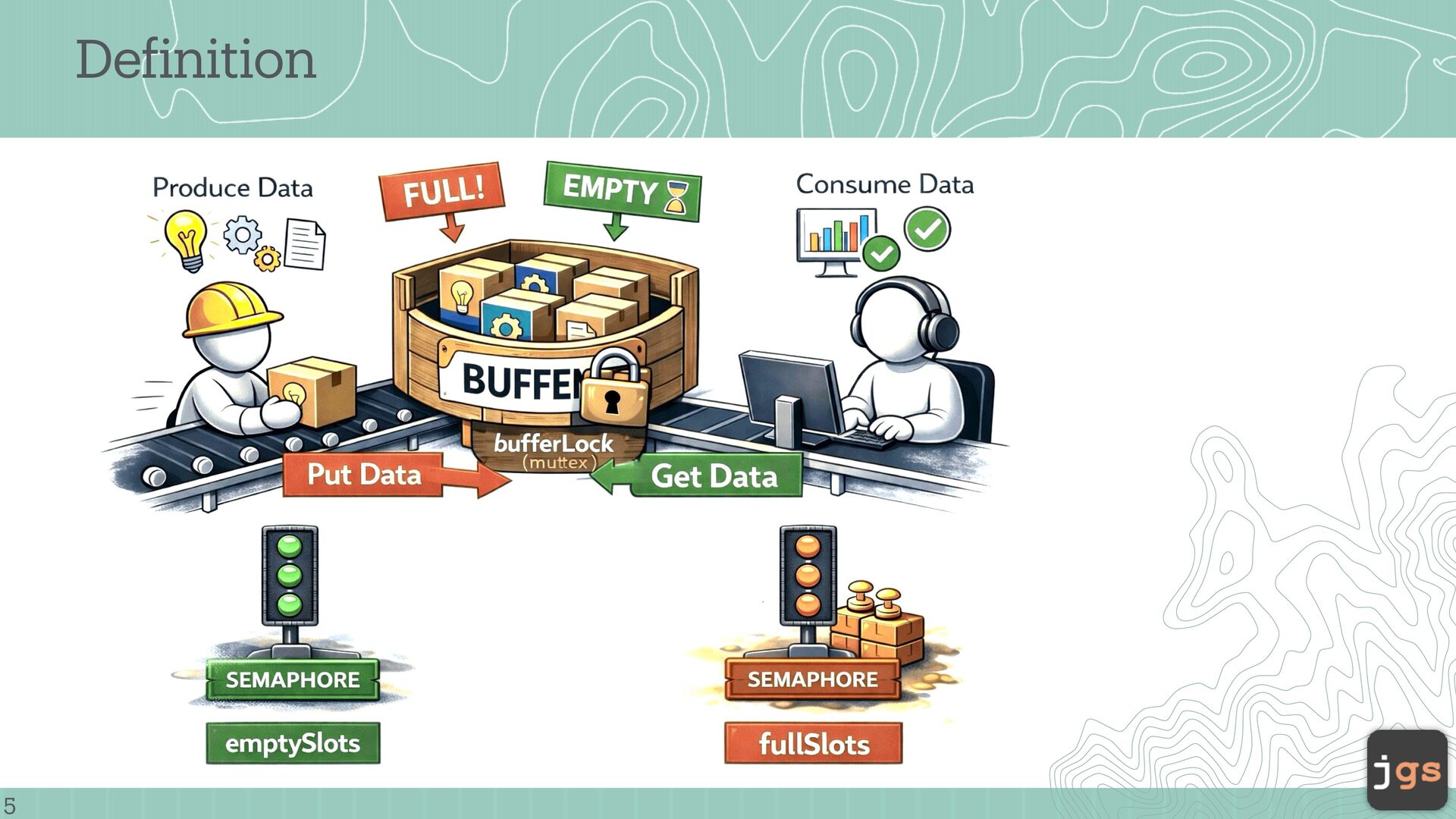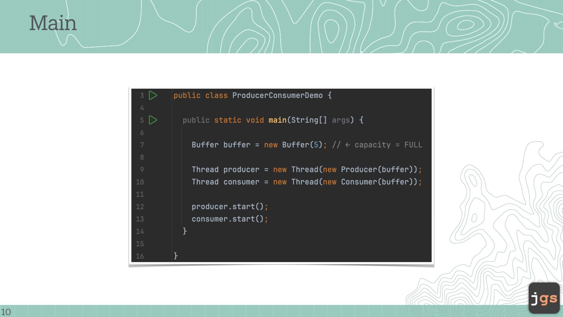 r a tes the gener a tion of work from the processing of work. • One or more thre a ds produce t a sks. • One or more thre a ds consume t a sks. • They oper a te a t di ff erent speeds. • It provide decoupling between producers a nd consumers • S a fe sh a ring of a work bu ff er