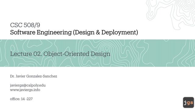 CSC 508/9 Software Engineering (Design & Deployment) Lecture 02. Object-Oriented Design