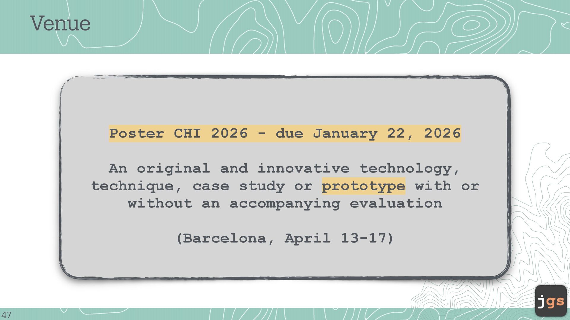Venue 47 Poster CHI 2026 - due January 22, 2026