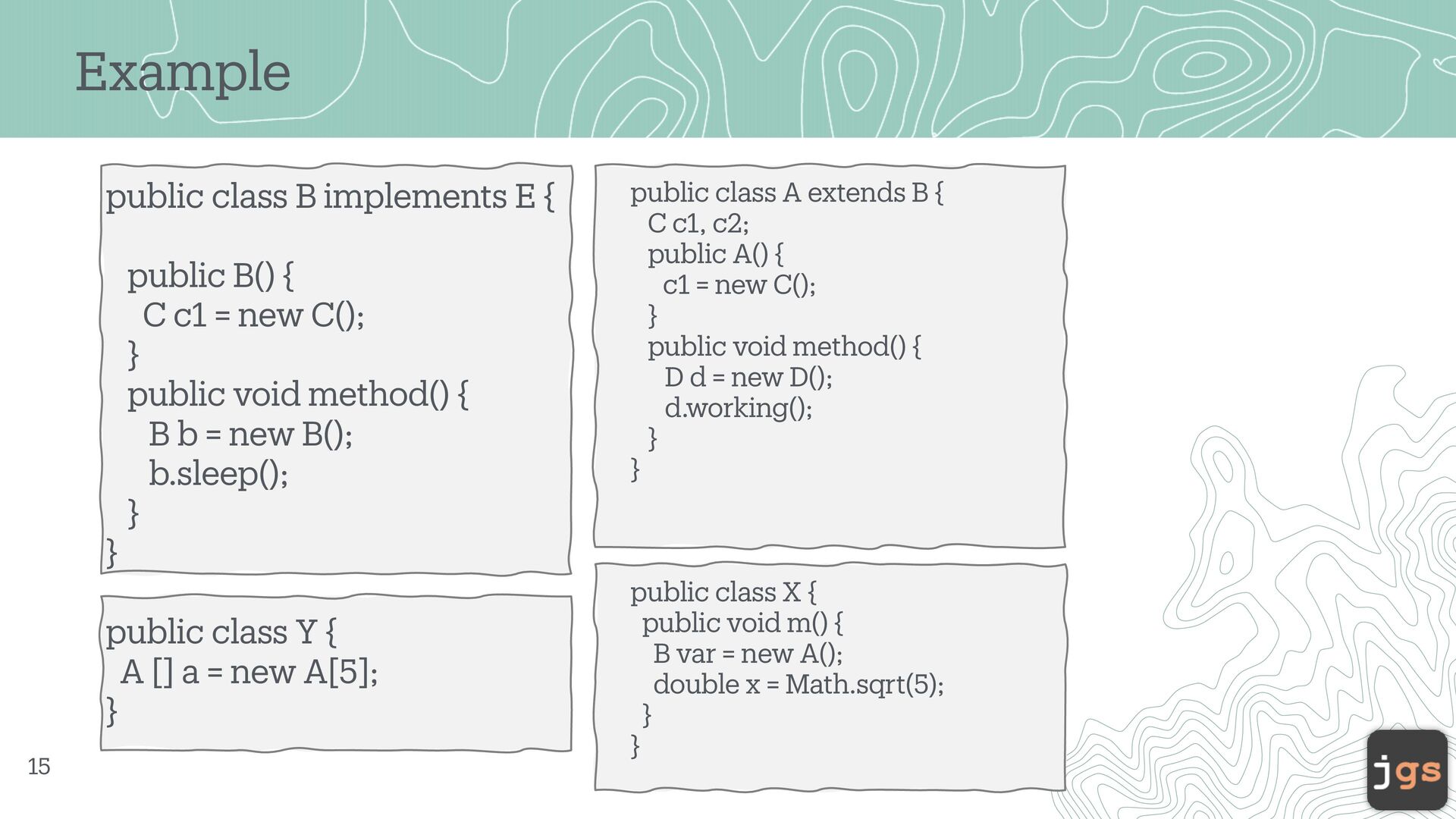 5. Example public class B implements E { public B() {